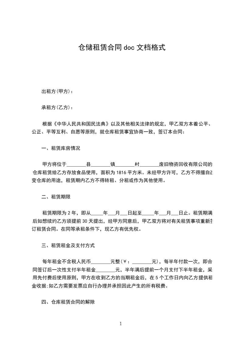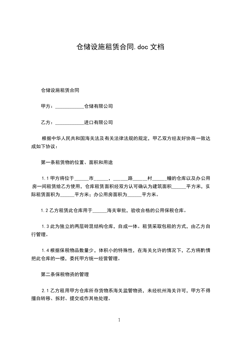 一、甲方将位于抚州市的拥有完全产权的占地面积____平方米土地出租给乙方使用,用于仓储。