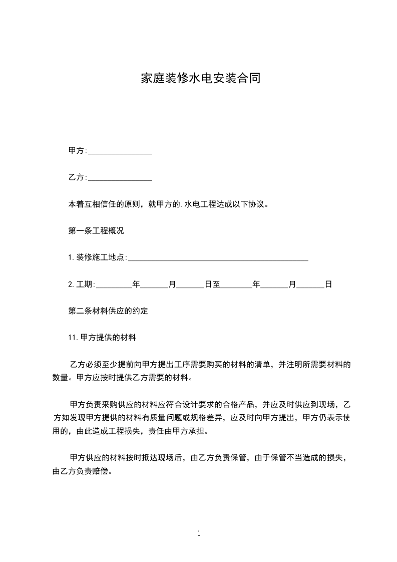 本着互相信任的原则,就甲方的.水电工程达成以下协议。