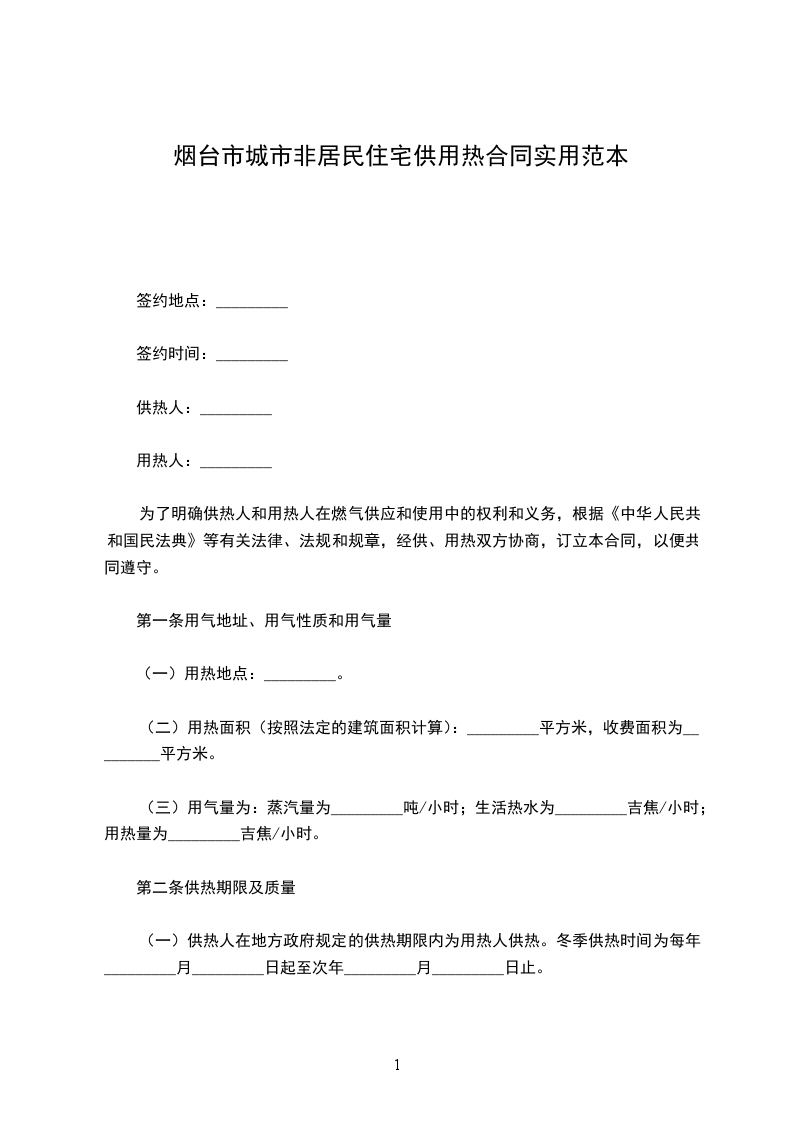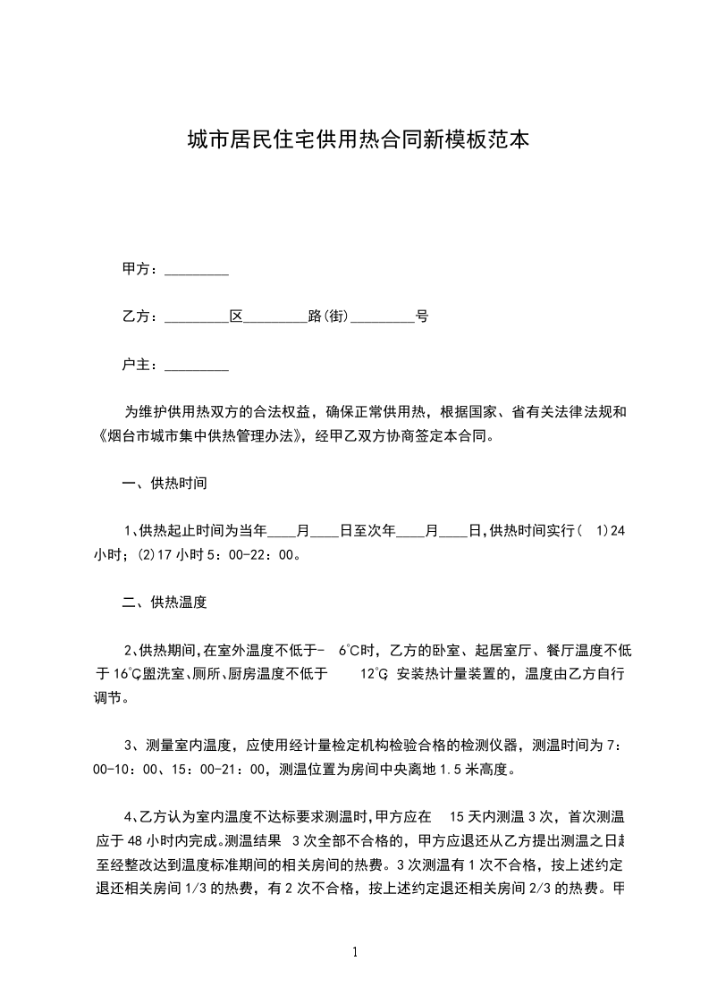 1、供热起止时间为当年____月____日至次年____月____日,供热时间实行(1)24小时;(2)17小时5:00-22:00。