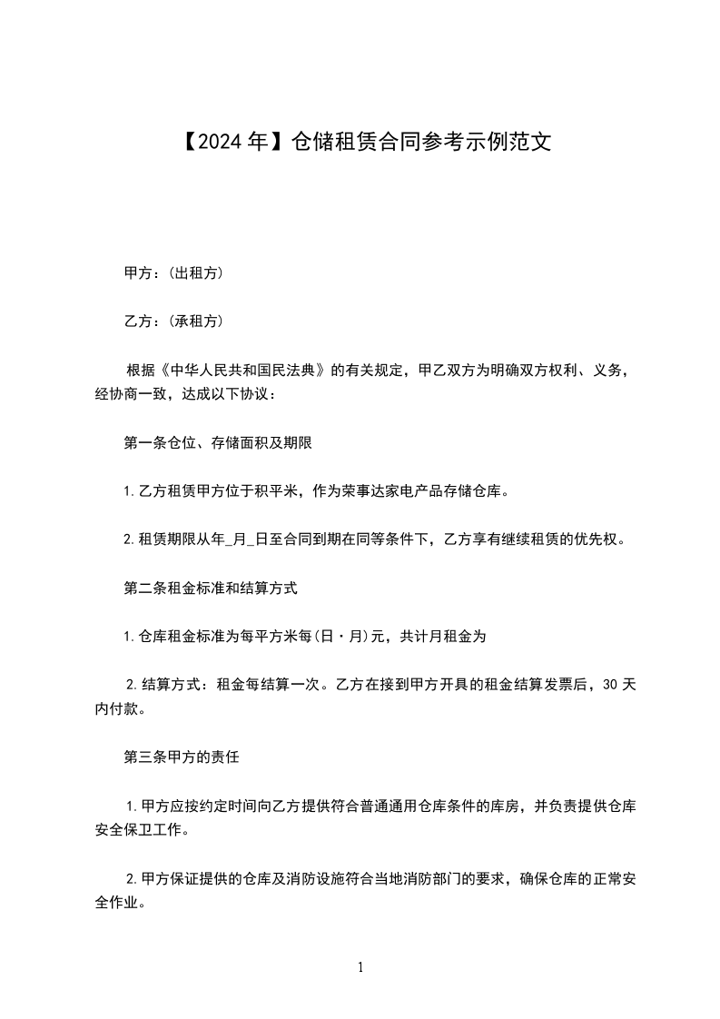 1、租厂押金:乙方应与签约同时付给甲方押金元,到期结算,多余无息归还。乙方提前终止承租的押金全部归甲方。