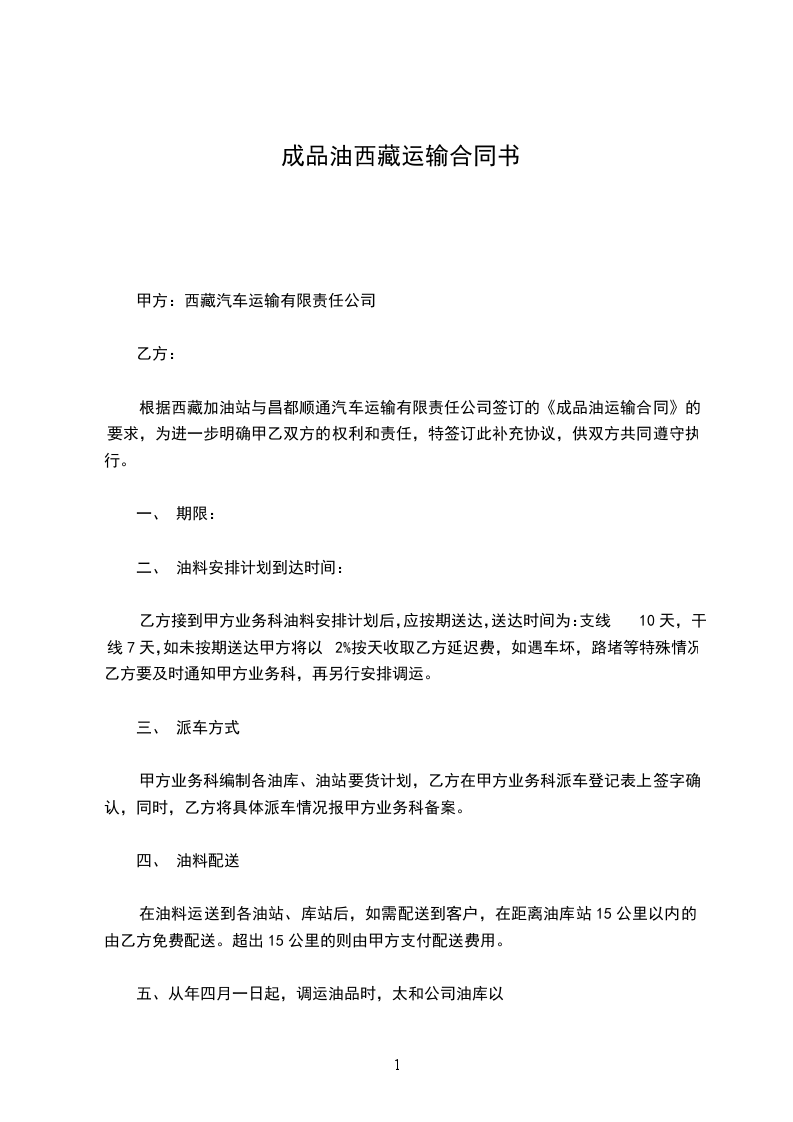 1、起运地点:甲方指定的油库或甲方指定的提货地点。