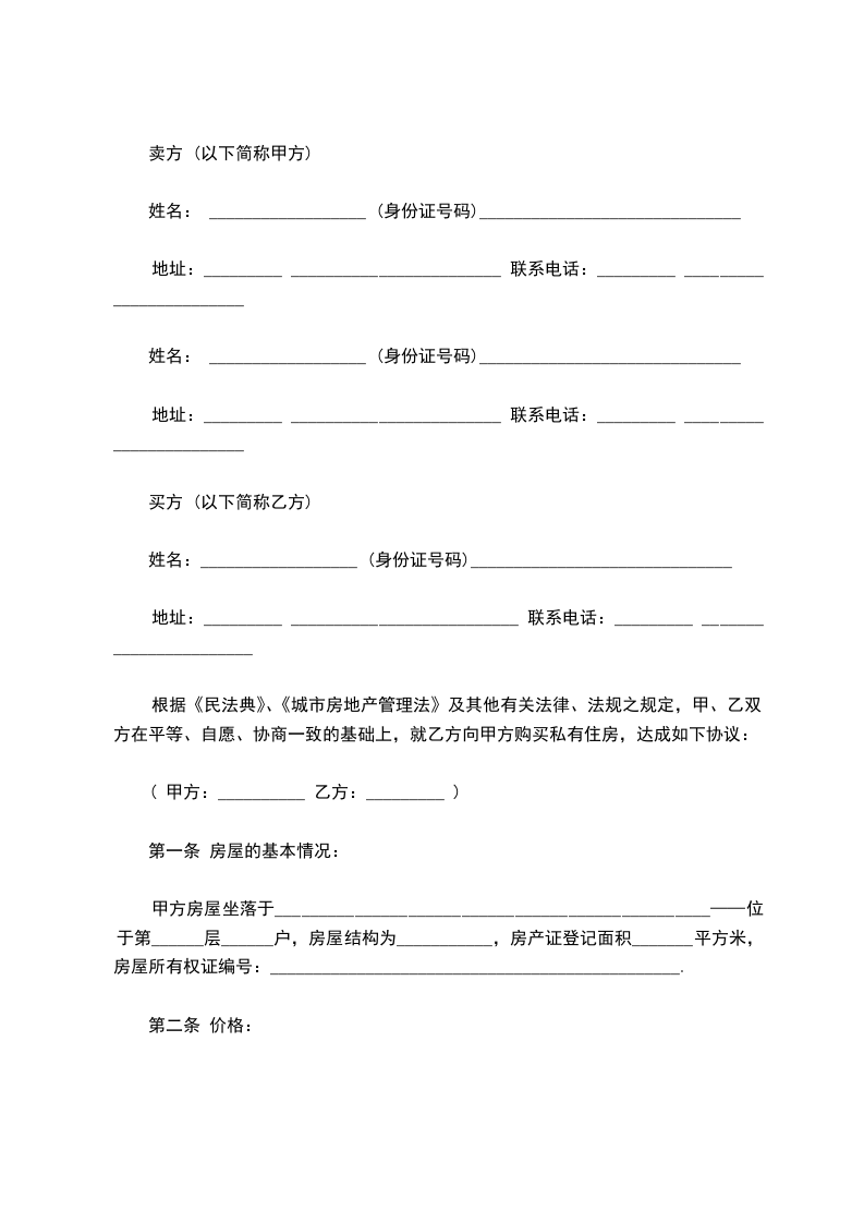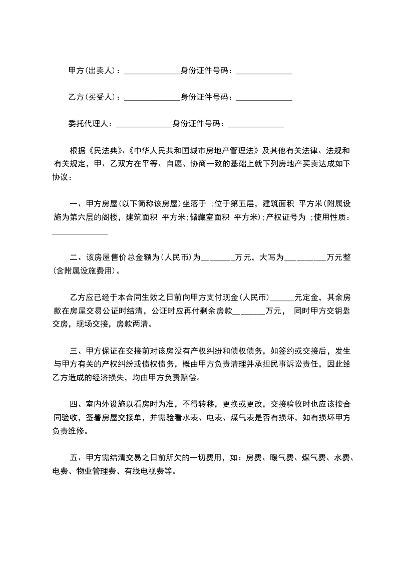 根据《中华人民共和国民法典》、《中华人民共和国城市房地产管理法》、《北京市城市房地产转让管理办法》及其他有关法律、法规的规定,出卖人和买受人在平等、自愿、公平、协商一致的基础上就存量房屋买卖事宜达成如下协议: