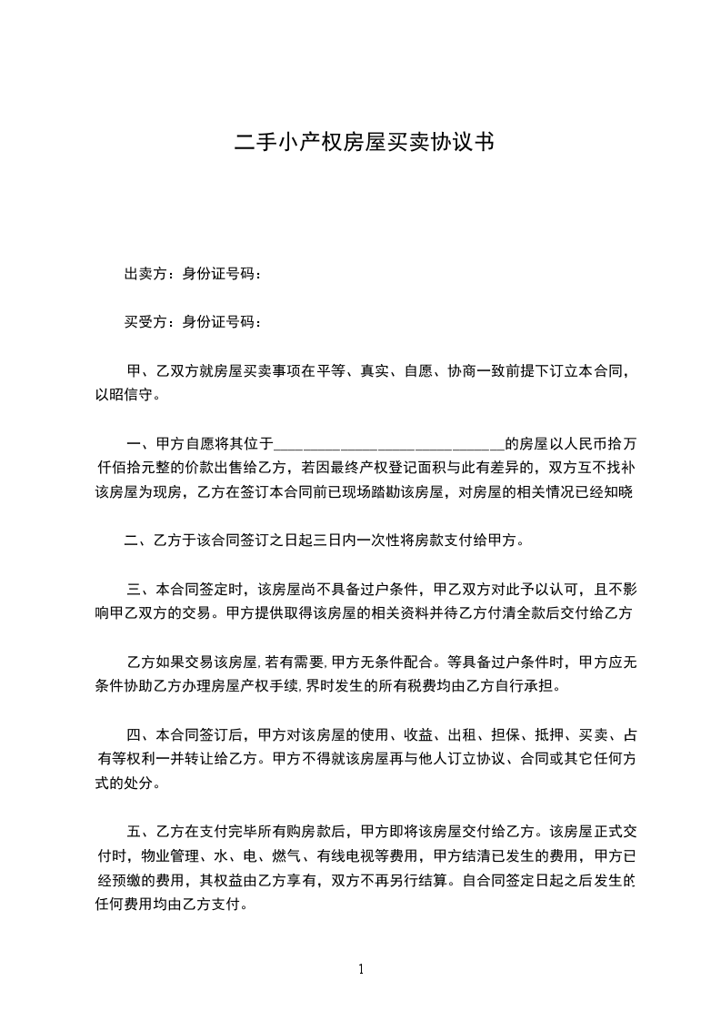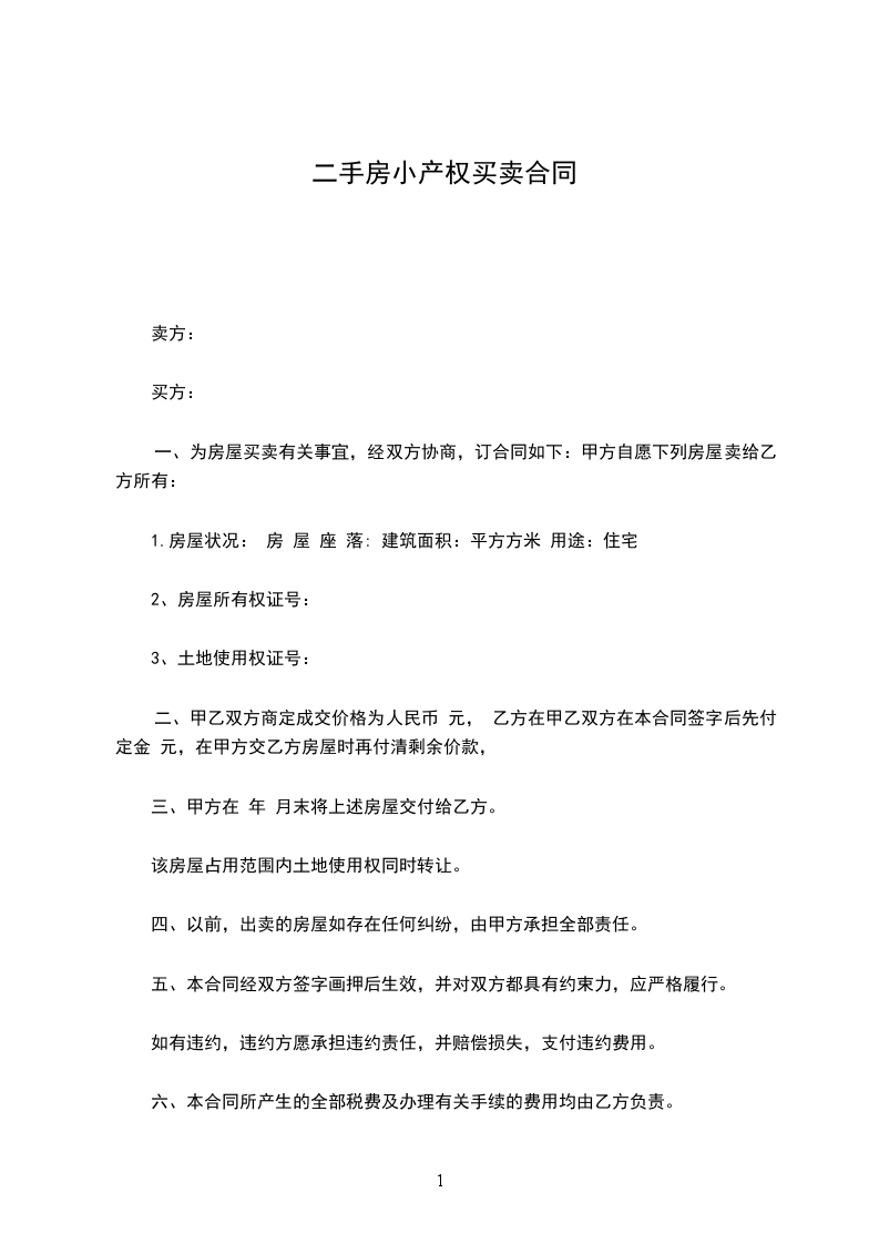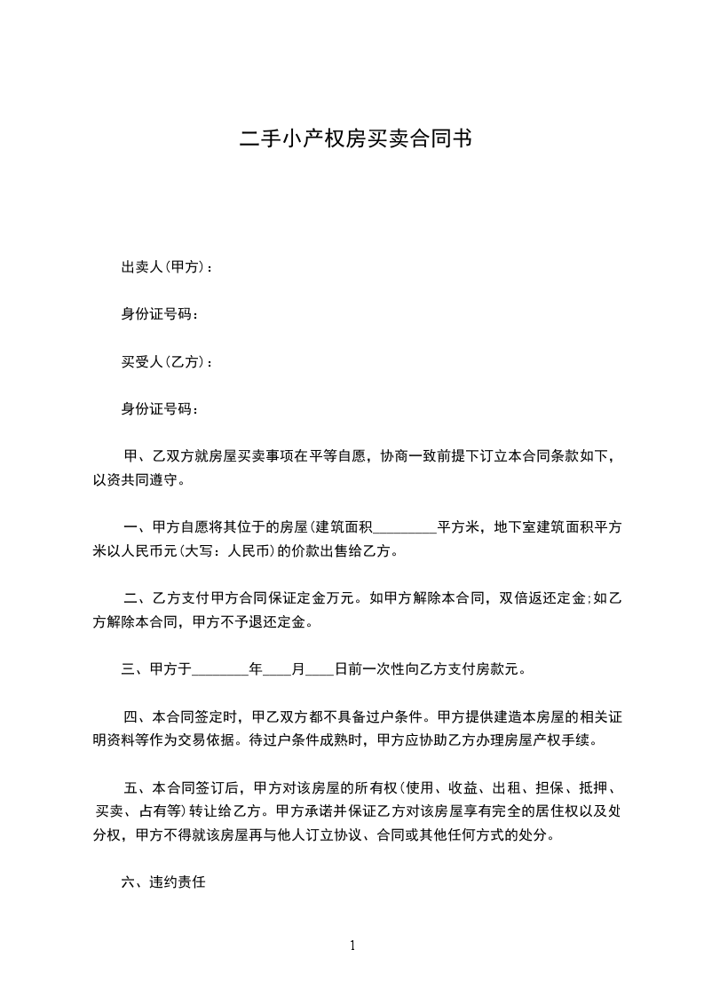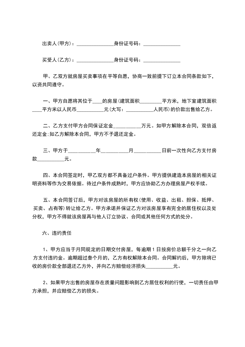 一、甲方自愿将其位于的房屋(建筑面积_________平方米,地下室建筑面积平方米以人民币_____元(大写:人民币)的价款出售给乙方。