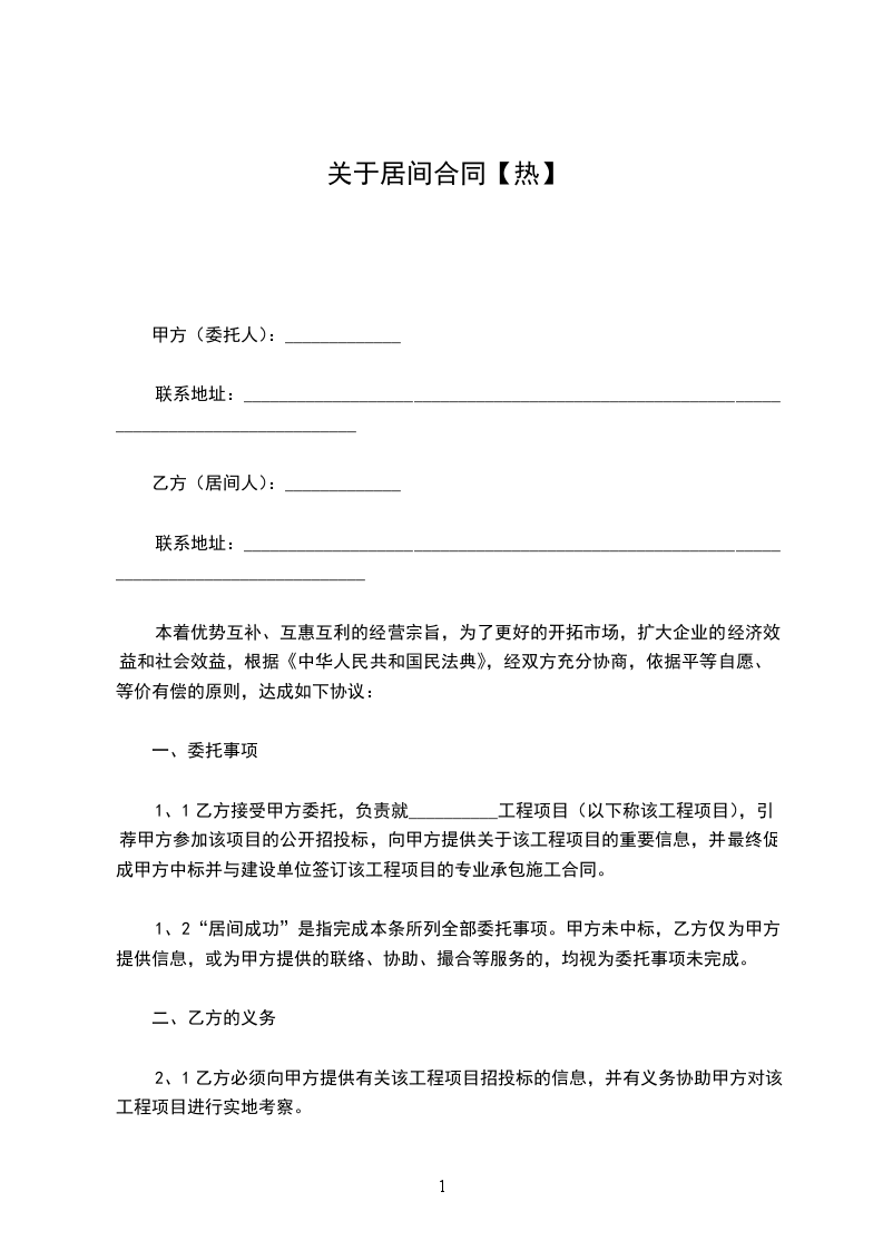 2、如果居间成功,则由甲方全面履行和建设单位所签订的专业施工合同。甲方因履行施工合同而产生的权利和义务,与乙方无关。