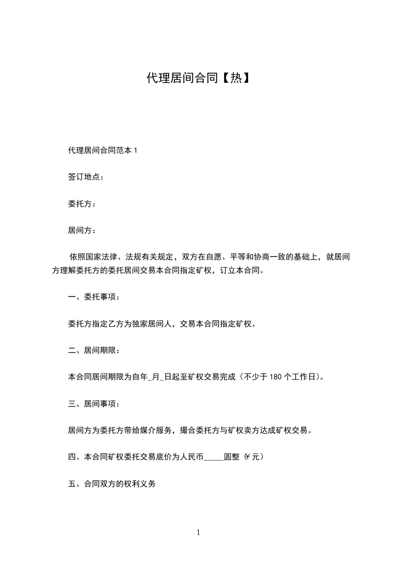 依照国家法律、法规有关规定,双方在自愿、平等和协商一致的基础上,就居间方理解委托方的委托居间交易本合同指定矿权,订立本合同。