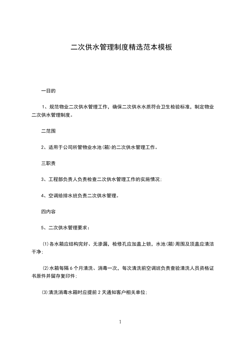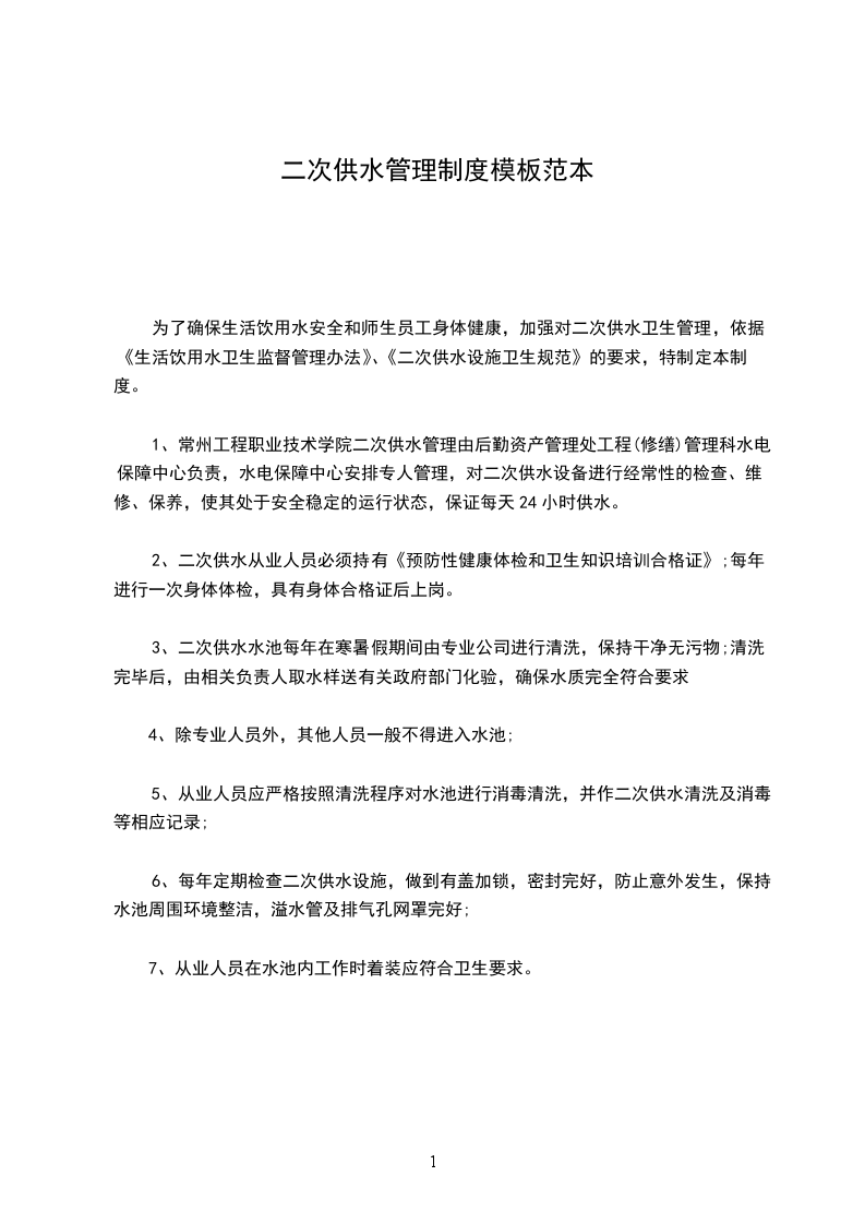 十、二次供水设备每周进行一次保养,并由设备责任人填写《二次供水设备周保养记录》。