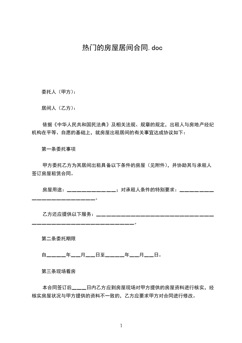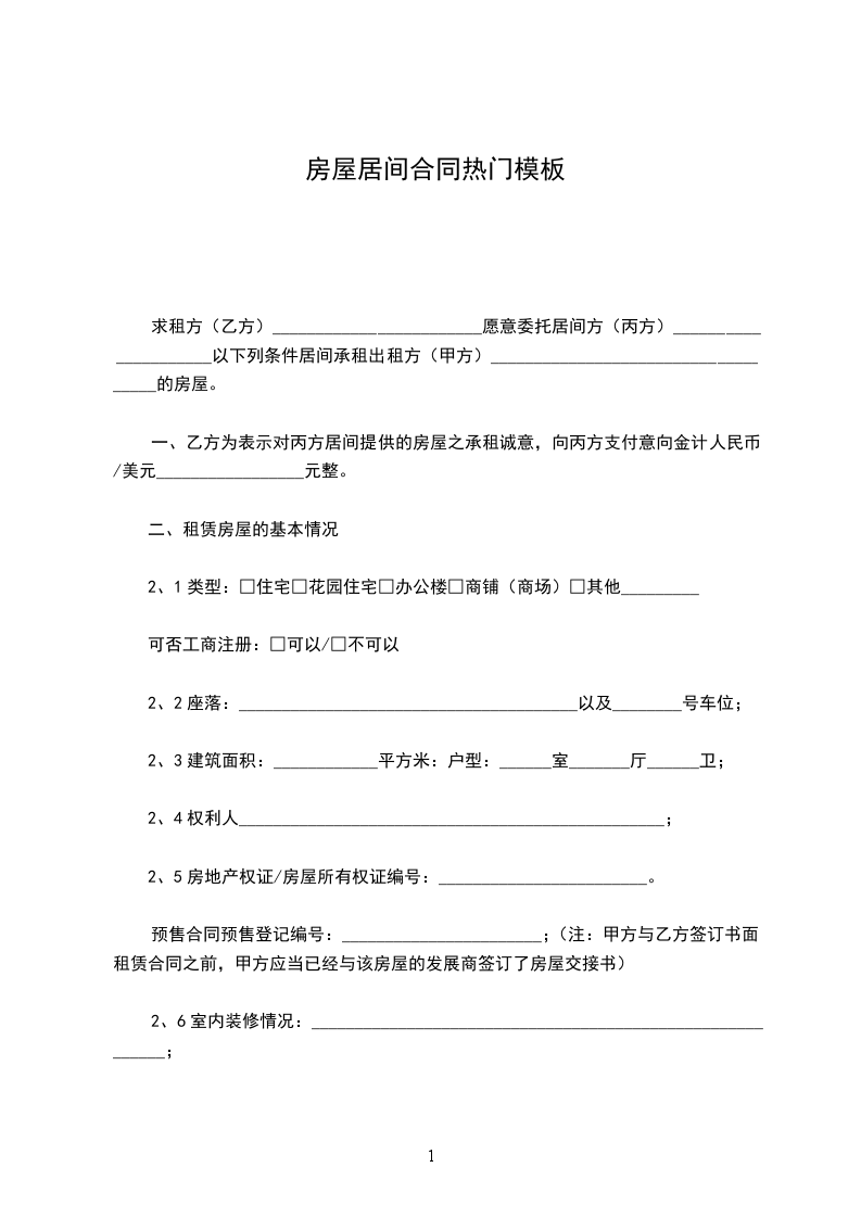 甲方委托乙方为其居间出租具备以下条件的房屋(见附件),并协助其与承租人签订房屋租赁合同。