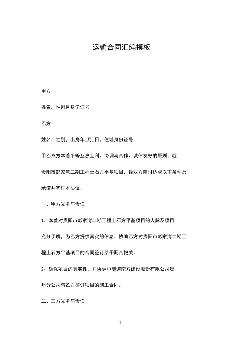 根据《中华人民共和国民法典》及其它国家相关法律、法规之规定,甲、乙双方在平等、自愿、协商一致的基础上,就下列运输事项达成一致,特订立本合同,以资共同信守,并遵照执行。