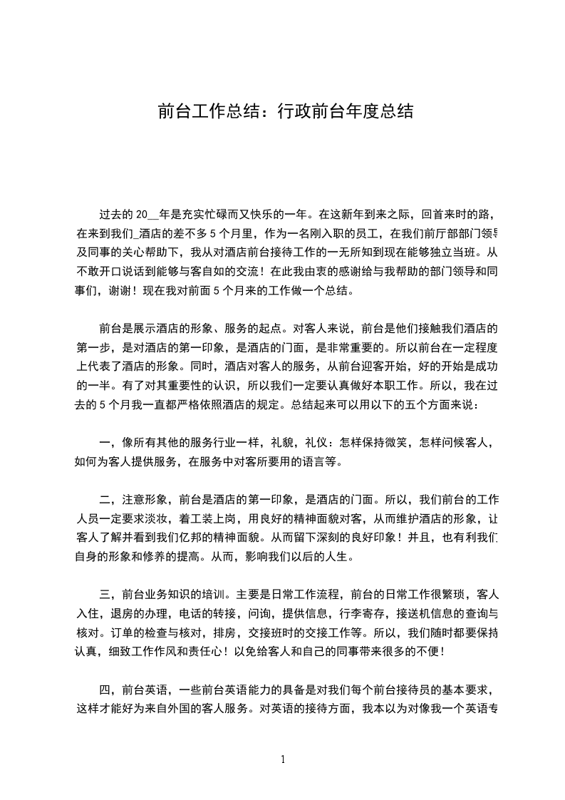 进公司时已由我的上级行政主管和人力专员给我介绍公司相关工作和我的本职位工作,五天工作下来,能按时完成上级交代工作,虽然不很熟练,经过和领导、员工的交流,也在网上也有查阅一些前台文员的工作,根据公司的实际情况,据此也有了我下一年度的工作构想和计划。