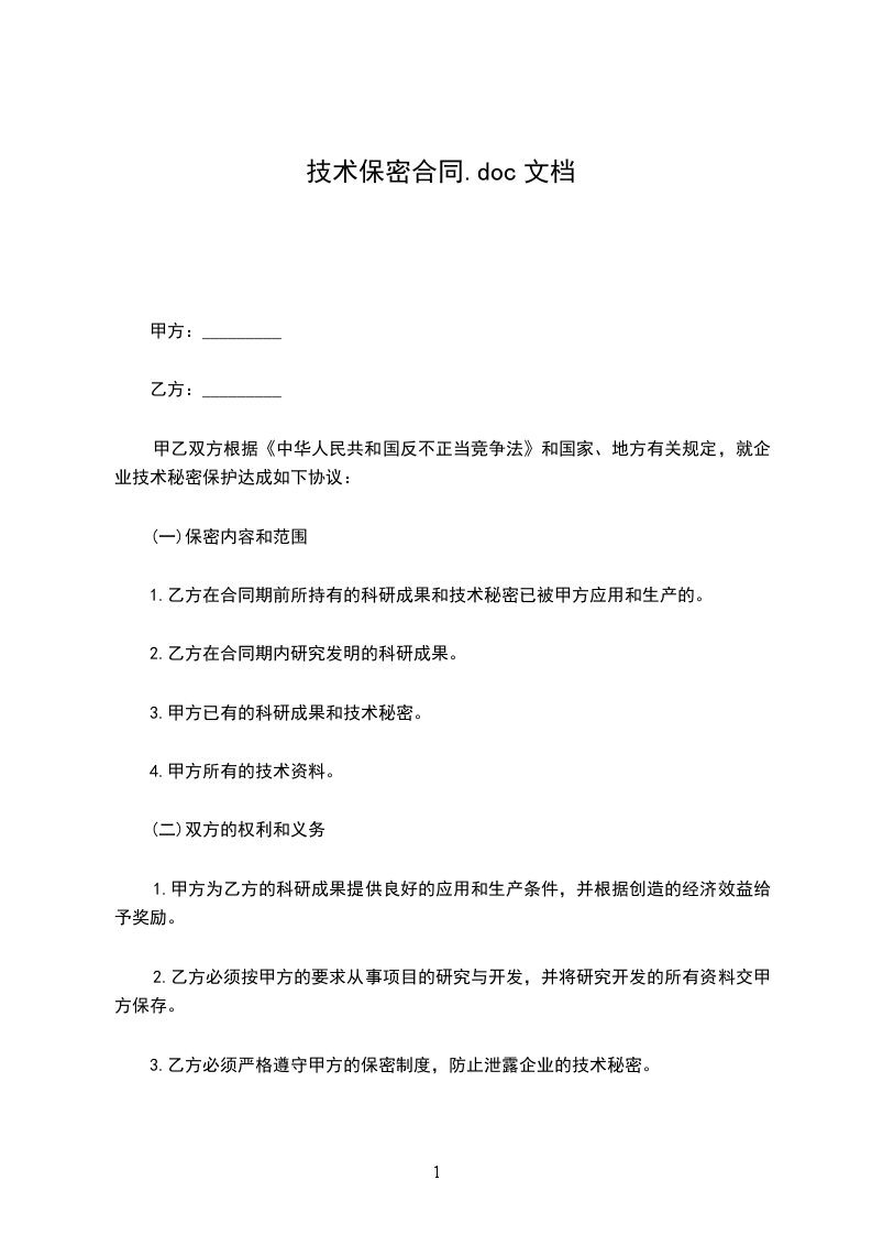 甲乙双方根据《中华人民共和国反不正当竞争法》和国家、地方有关规定,就企业技术秘密保护达成如下协议: