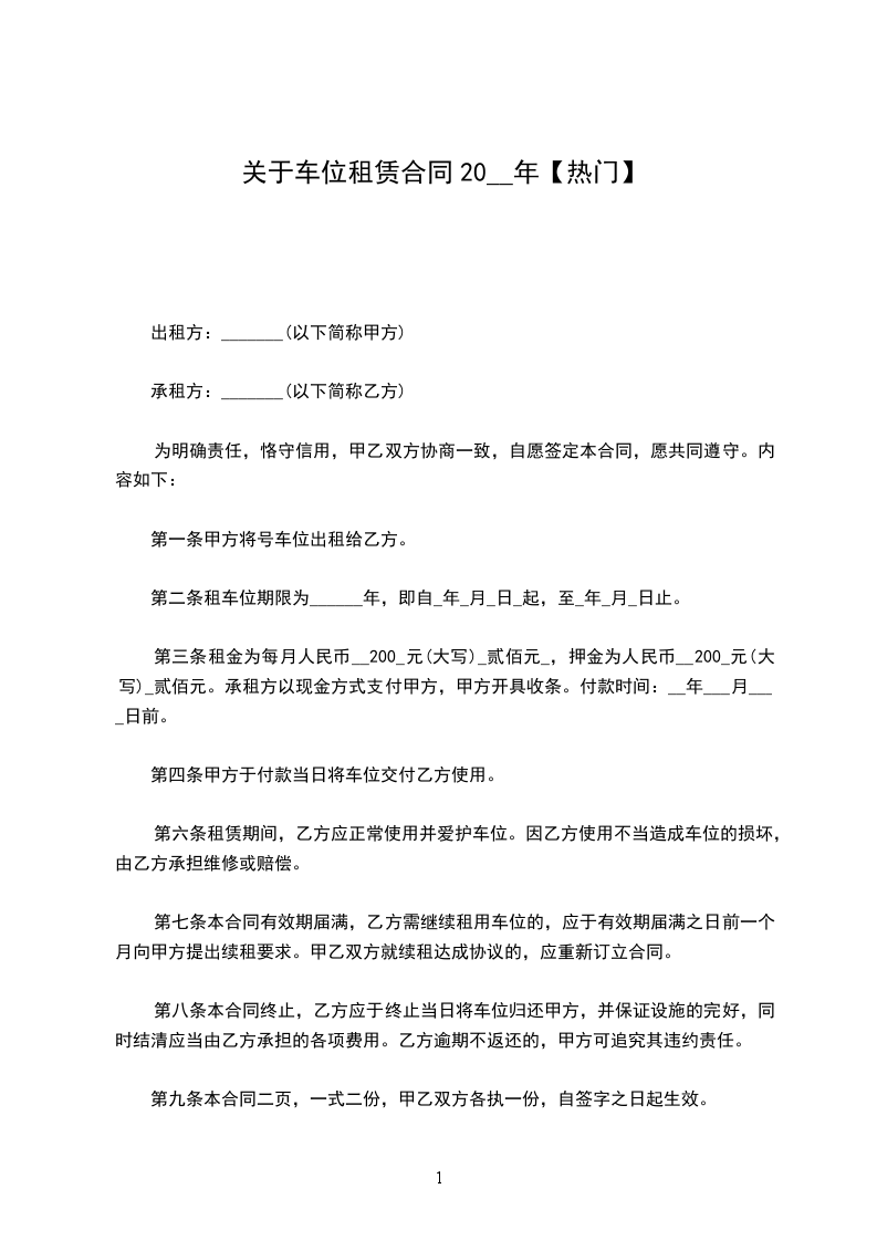 第七条本合同有效期届满,乙方需继续租用车位的,应于有效期届满之日前一个月向甲方提出续租要求。甲乙双方就续租达成协议的,应重新订立合同。