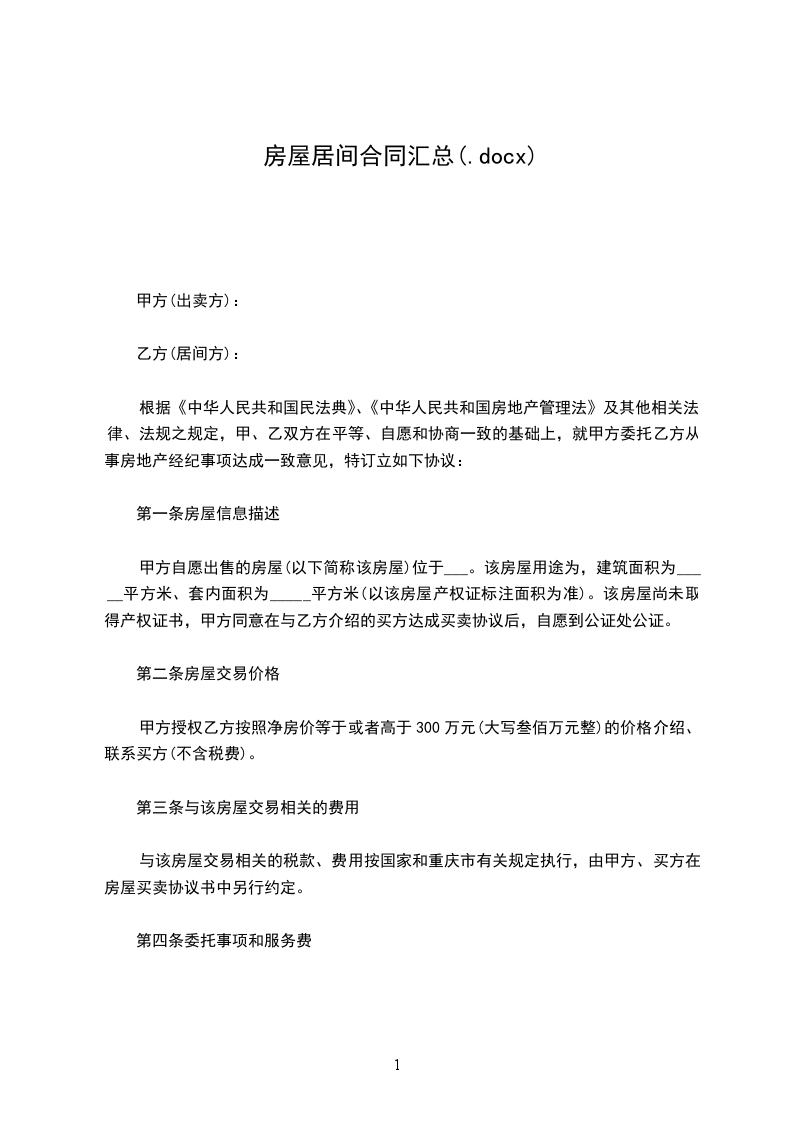 1.该房产委托出售价格为人民币(大写)__________元(¥__________)此价格为税前款。