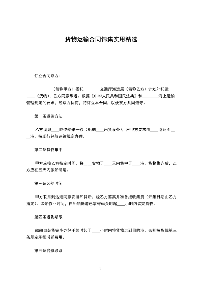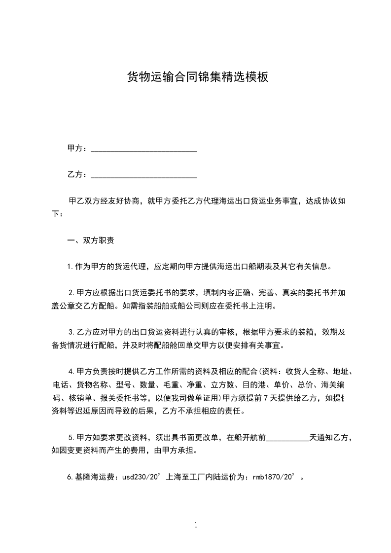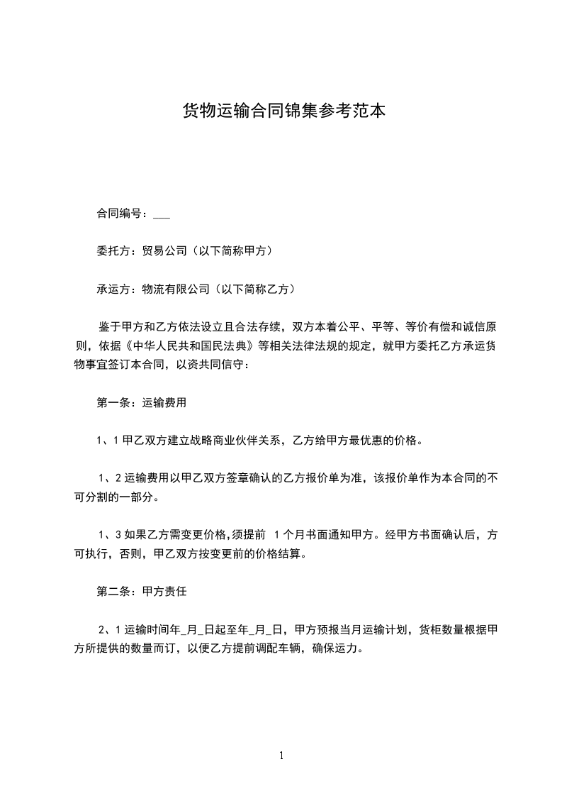 2、1运输时间年_月_日起至年_月_日,甲方预报当月运输计划,货柜数量根据甲方所提供的数量而订,以便乙方提前调配车辆,确保运力。