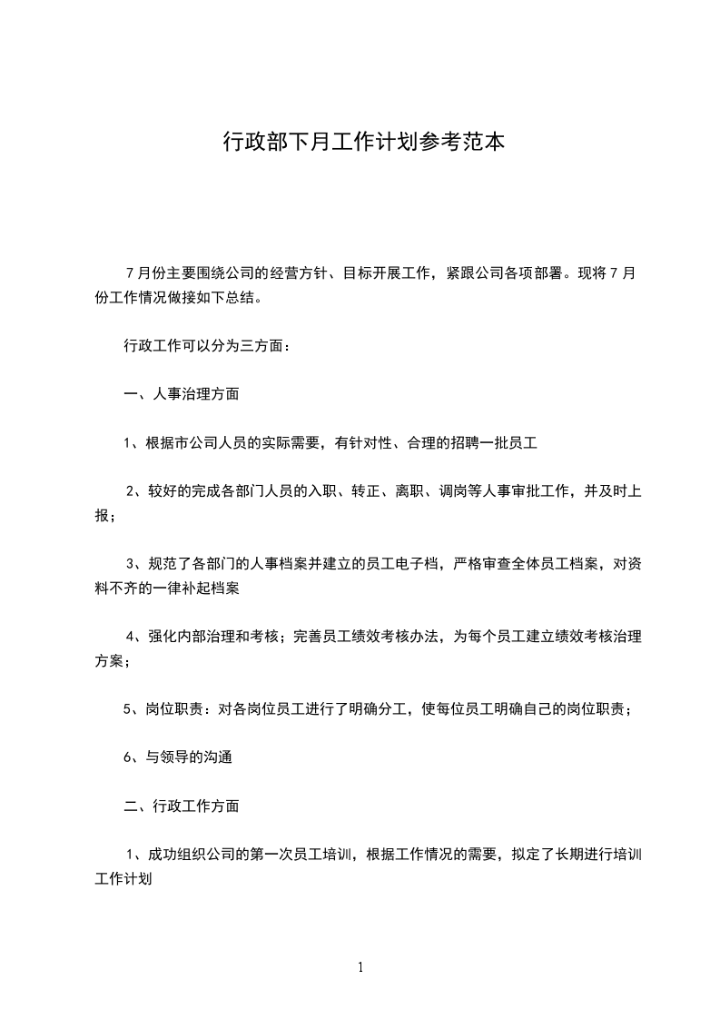 计划9月份的员工培训工作抓紧新员工的培训以及团队意识与凝聚力的培养做好员工活动