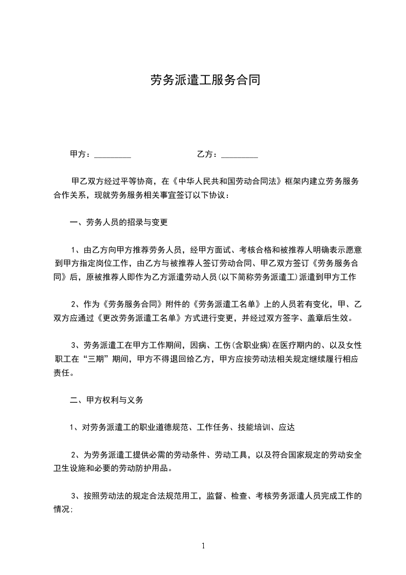 1、甲方为乙方提供符合乙方用人需求的相关劳务派遣人员和劳务派遣服务。