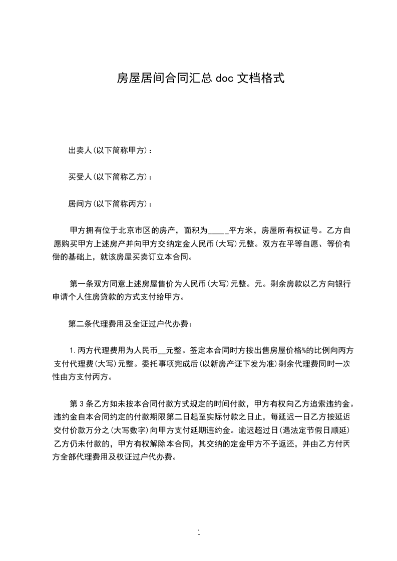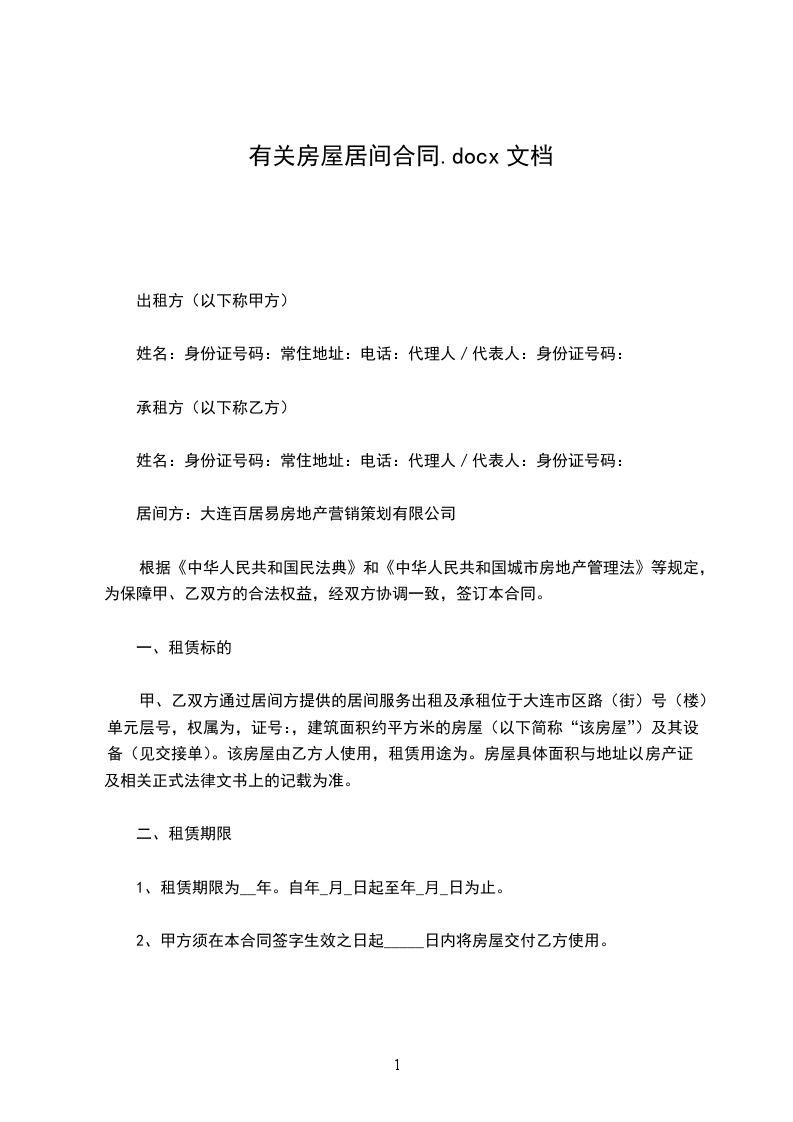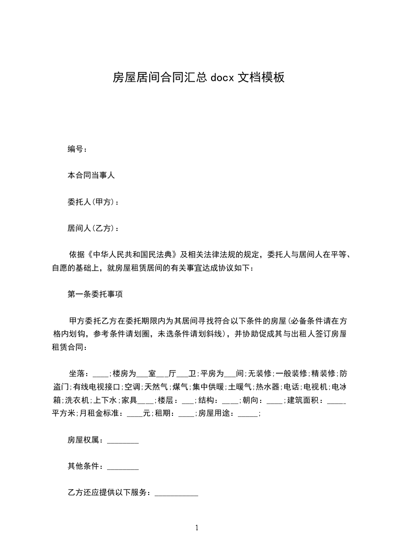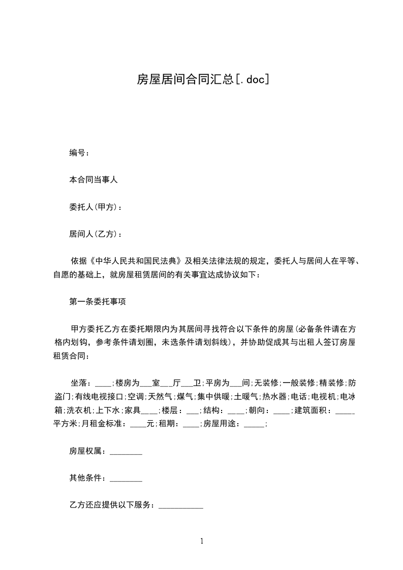 依据《中华人民共和国民法典》及相关法律法规的规定,委托人与居间人在平等、自愿的基础上,就房屋租赁居间的有关事宜达成协议如下: