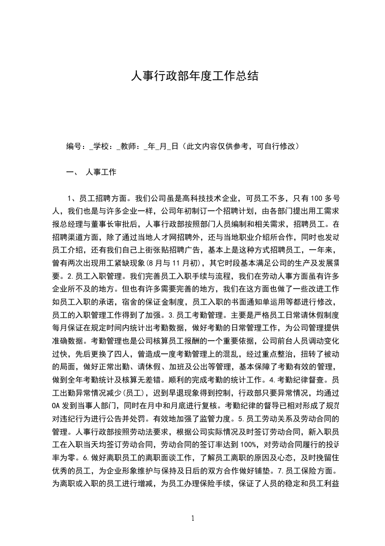 一年来,行政部结合工作实际,认真履行工作职责,加强与其他部门的协调与沟通,使行政部基础管理工作基本实现了规范化,相关工作达到了优质、高效,为公司各项工作的开展创造了良好条件。