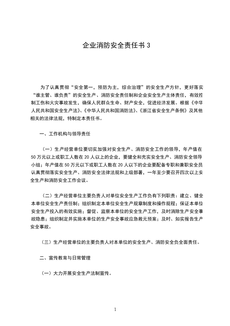 为了认真贯彻“安全第一,预防为主,综合治理”的安全生产方针,更好落实“谁主管、谁负责”的安全生产、消防安全责任制和企业安全生产主体责任,有效控制工伤和火灾事故发生,确保人民群众生命、财产安全,促进经济发展。根据《中华人民共和国安全生产法》、《中华人民共和国消防法》、《浙江省安全生产条例》及其他相关的法律法规,特制定本责任书。