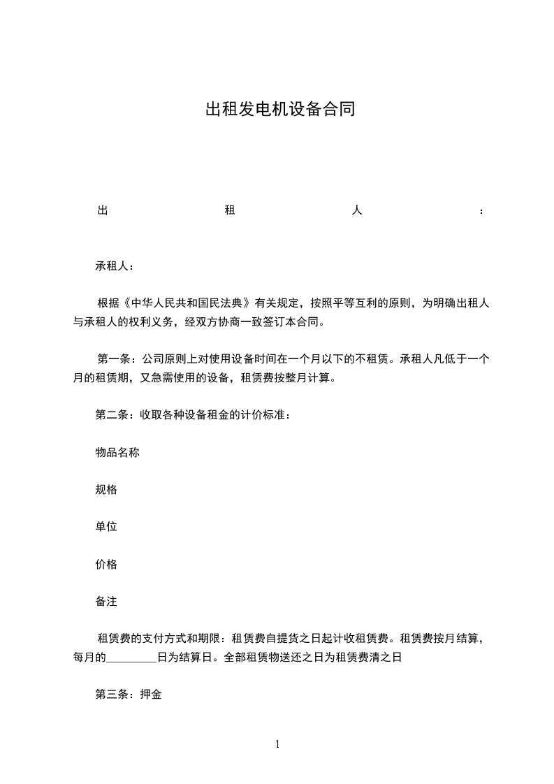 2 支付方式设备安装,调试完毕送电能正常使用后开始计算租期并支付第一年租金,一年期满后再支付第二年租金 元整。