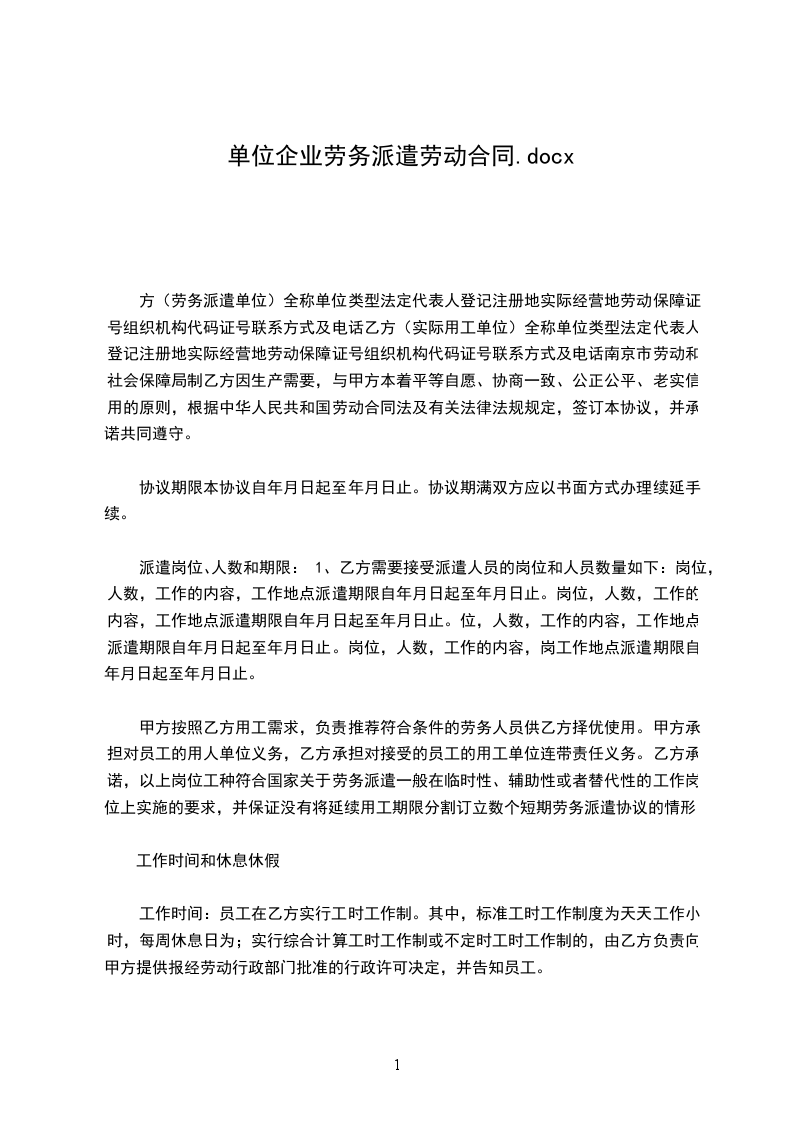 乙方在协议期内由甲方派往___________________,工作岗位由所派往的单位负责安排与调整,乙方愿意服从。