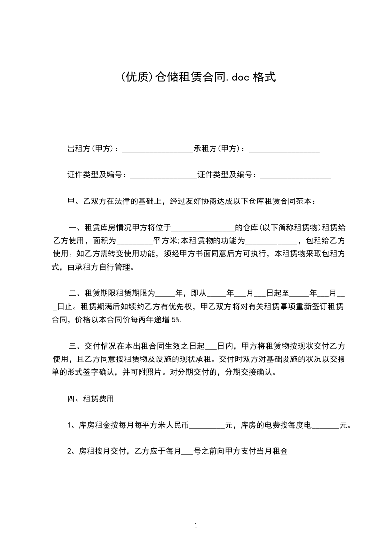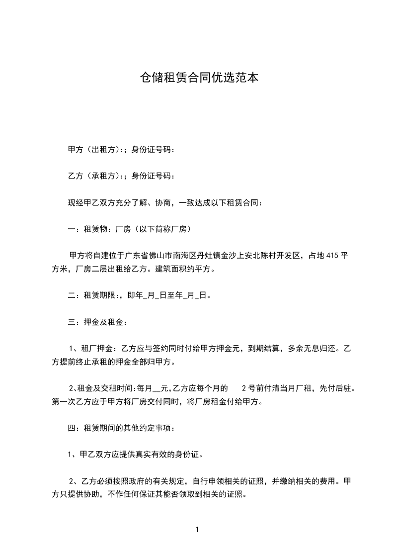 乙方(承租方):;身份证号码: