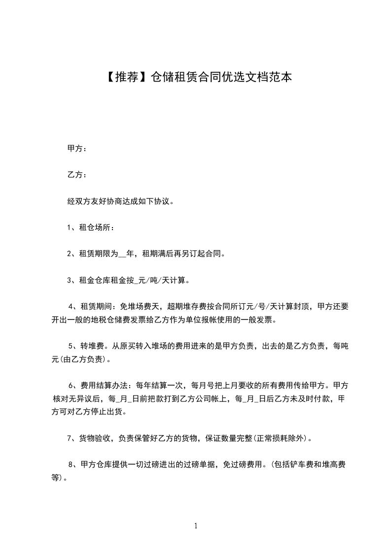 1、租厂押金:乙方应与签约同时付给甲方押金元,到期结算,多余无息归还。乙方提前终止承租的押金全部归甲方。