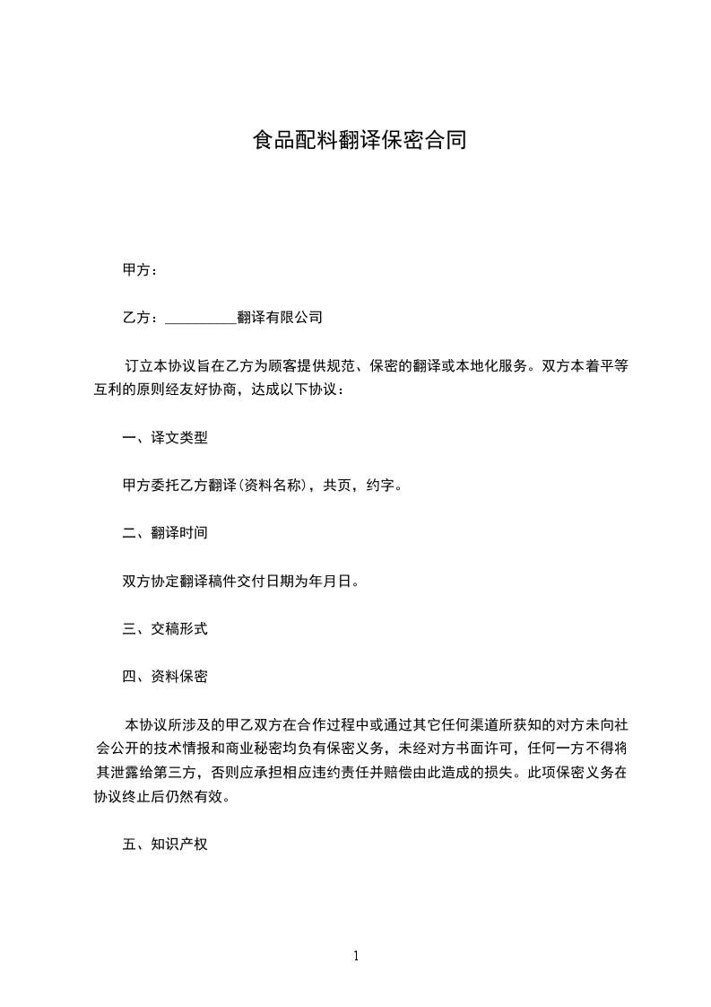 七、本协议未尽事项,经双方协商一致签订补充协议,补充协议与本协议具有同等效力。本协议一式两份,甲乙双方各执一份。本保密协议经签字盖章后生效。甲方:(签章)乙方:(签章)__________翻译有限公司