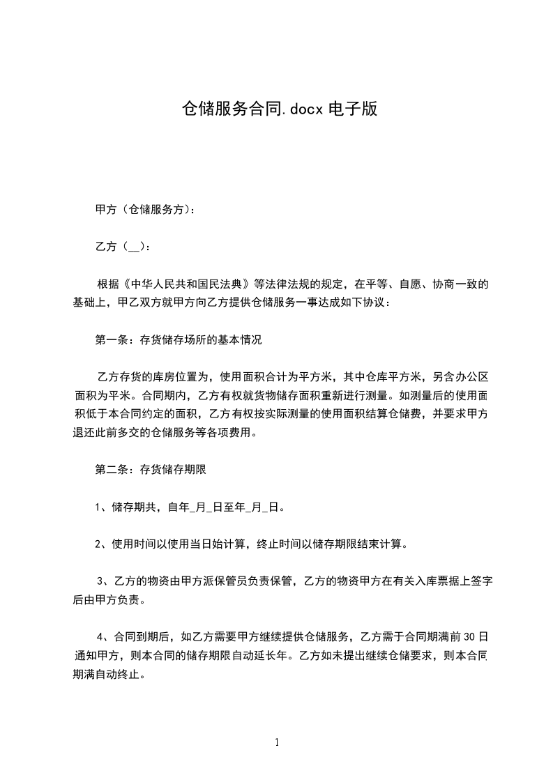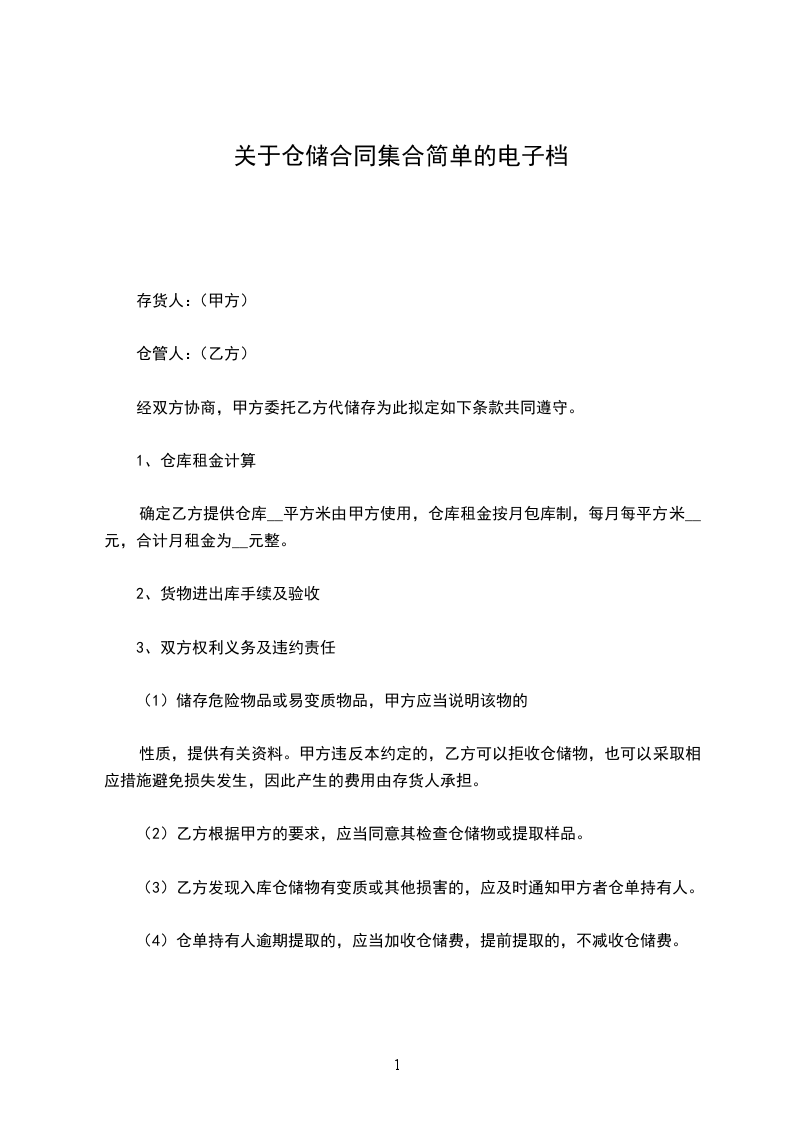 确定乙方提供仓库_________平方米由甲方使用,仓库租金按月包库制,每月每平方米_________元,合计月租金为_________元整。