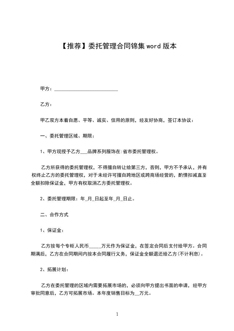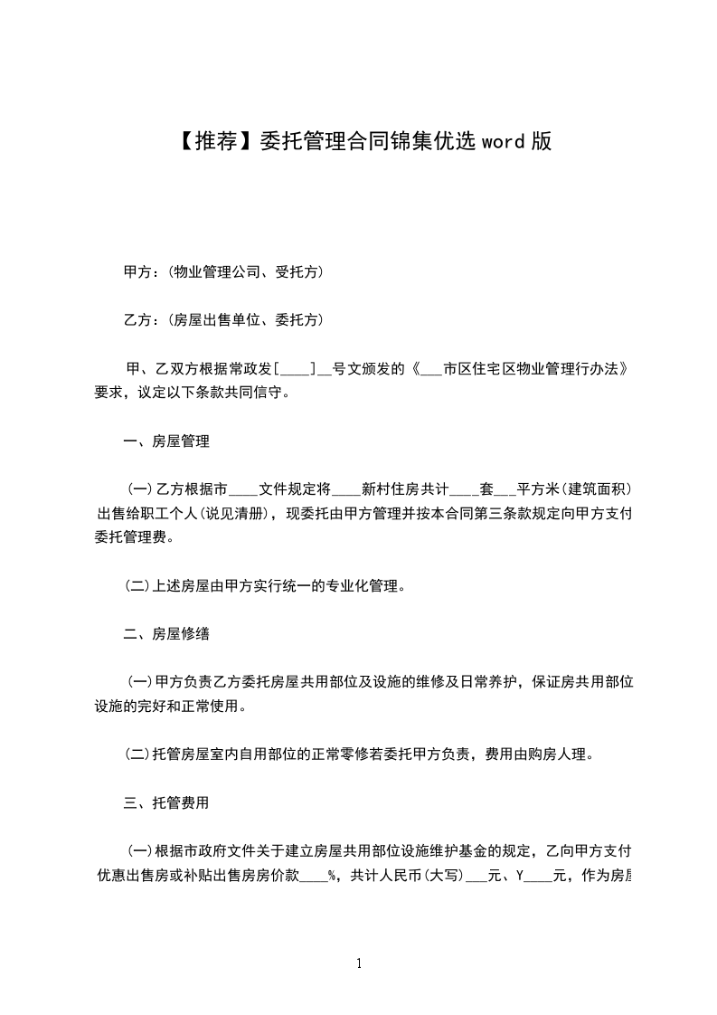 委托管理合同篇5甲方(委托方):