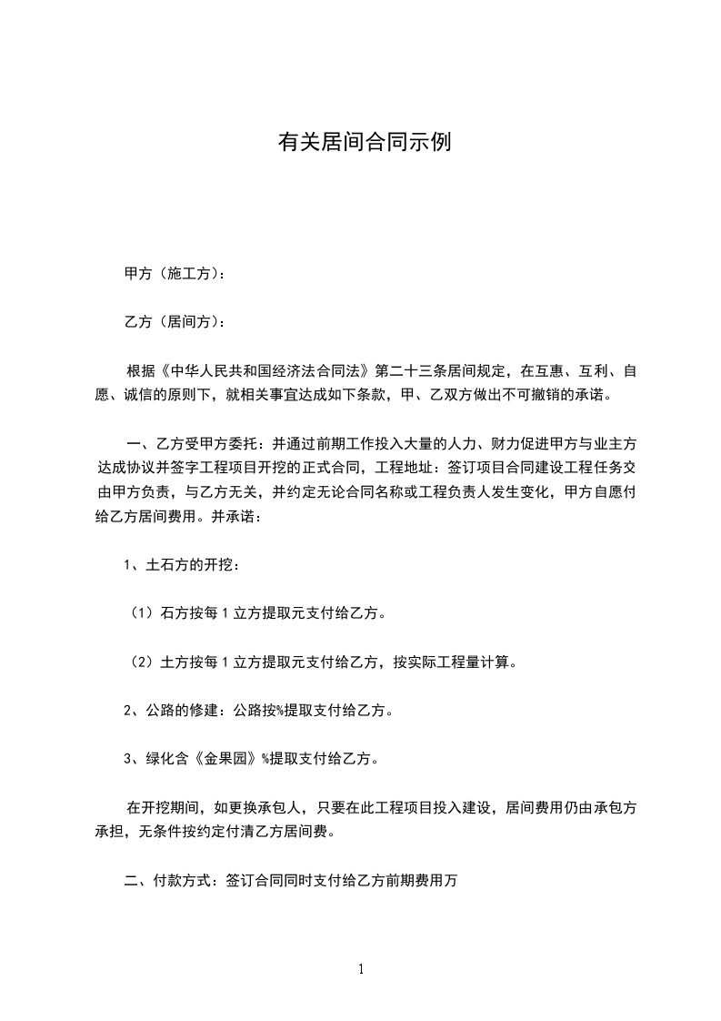 2、居间报酬在甲方与乙方引荐的包施工合同)后日内付清。单位签订该工程项目的专业承_______%。