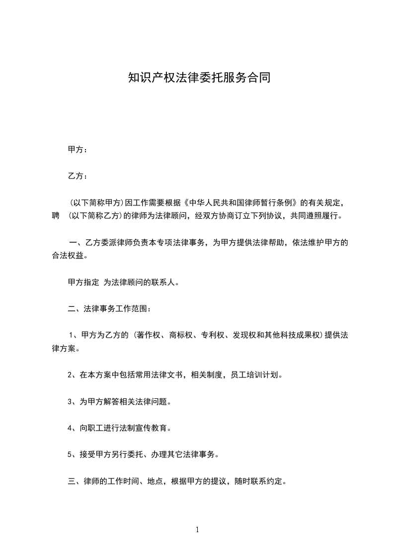 1、甲方为乙方的 (著作权、商标权、专利权、发现权和其他科技成果权)提供法律方案。