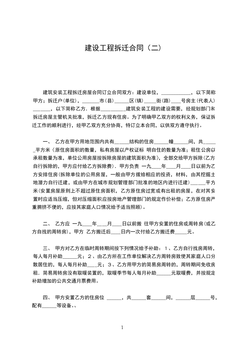 建设(甲方):____________ 拆迁户(乙方):____________