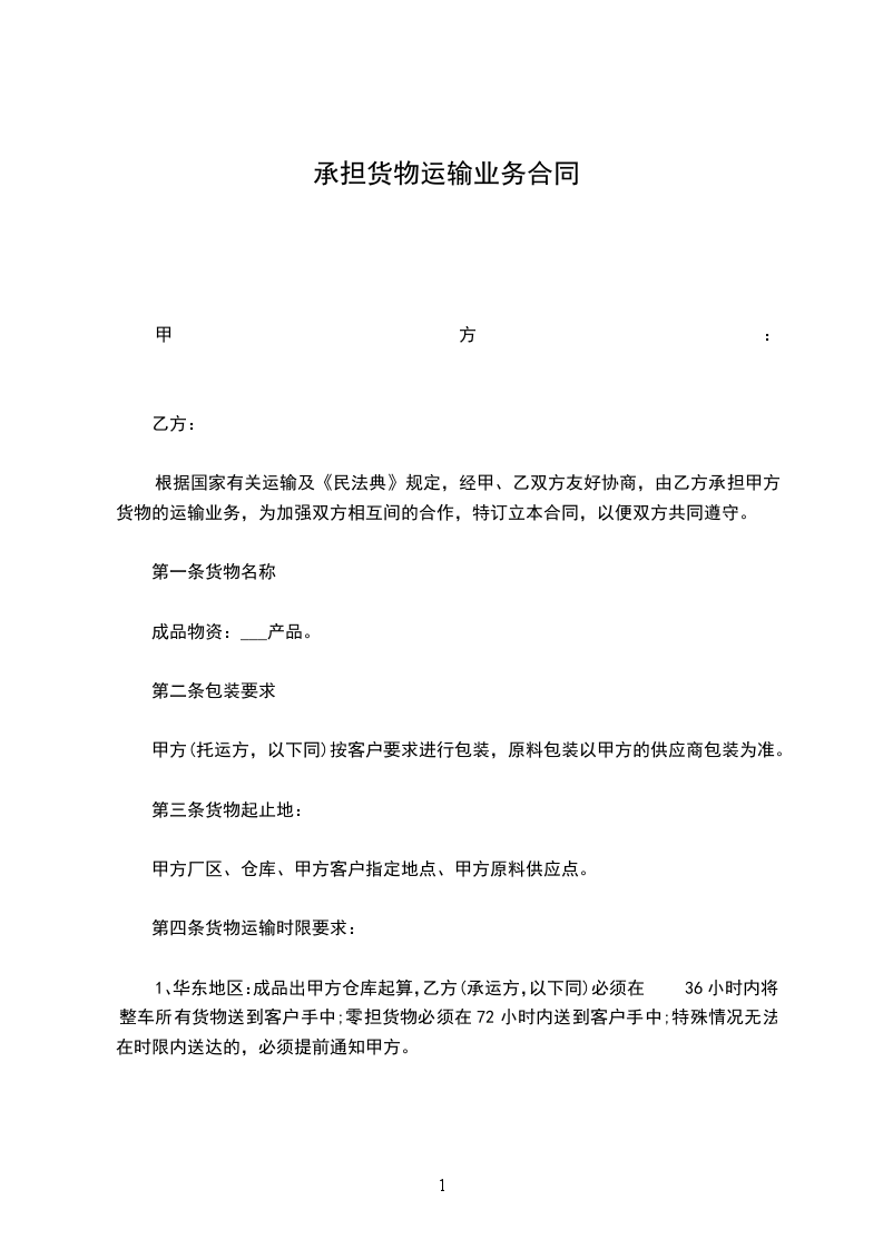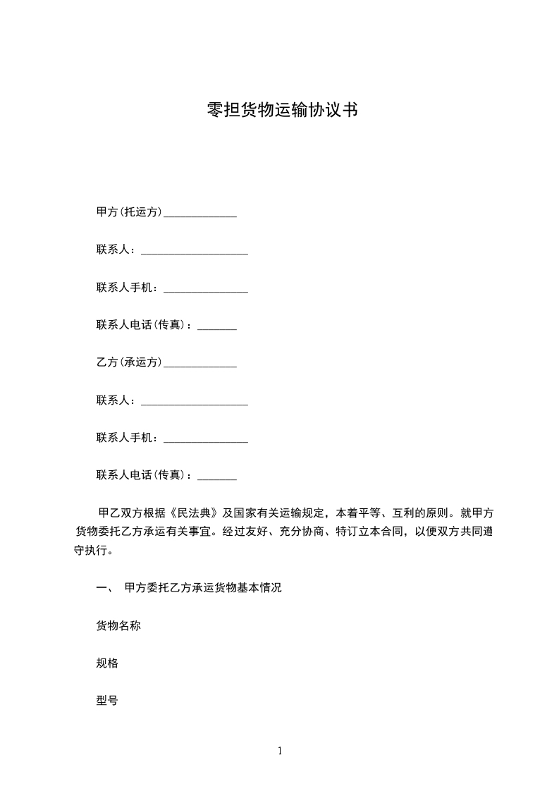 甲乙双方根据《民法典》及国家有关运输规定,本着平等、互利的原则。就甲方货物委托乙方承运有关事宜。经过友好、充分协商、特订立本合同,以便双方共同遵守执行。