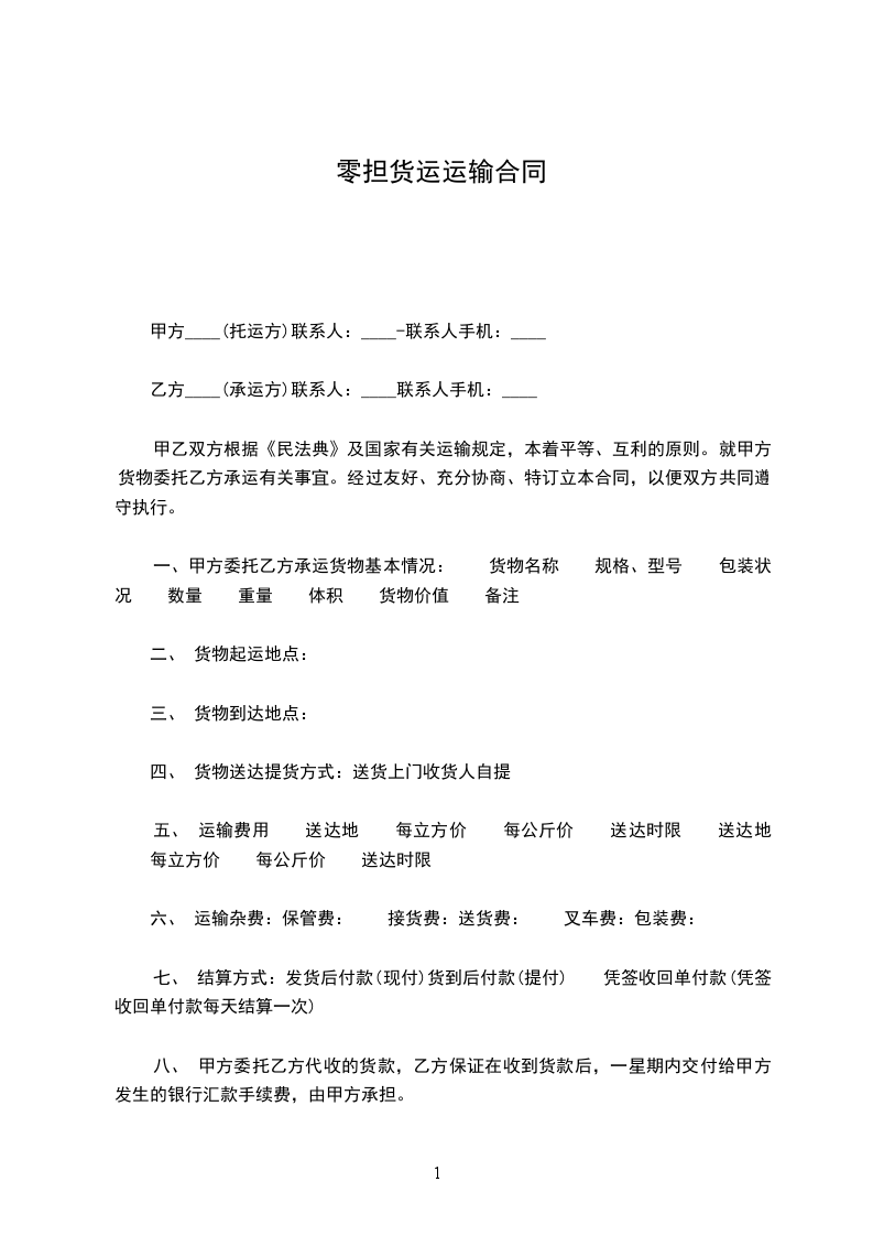十五、甲方每次发货应实提供下列资料,如因不相符、不真实所造成的一切损失,由甲方承担。(货物名称、数量、立方数或重量数、收货人姓名、电话、详细地址)
