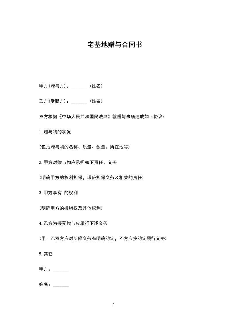 甲方(赠与方):_______ (姓名)