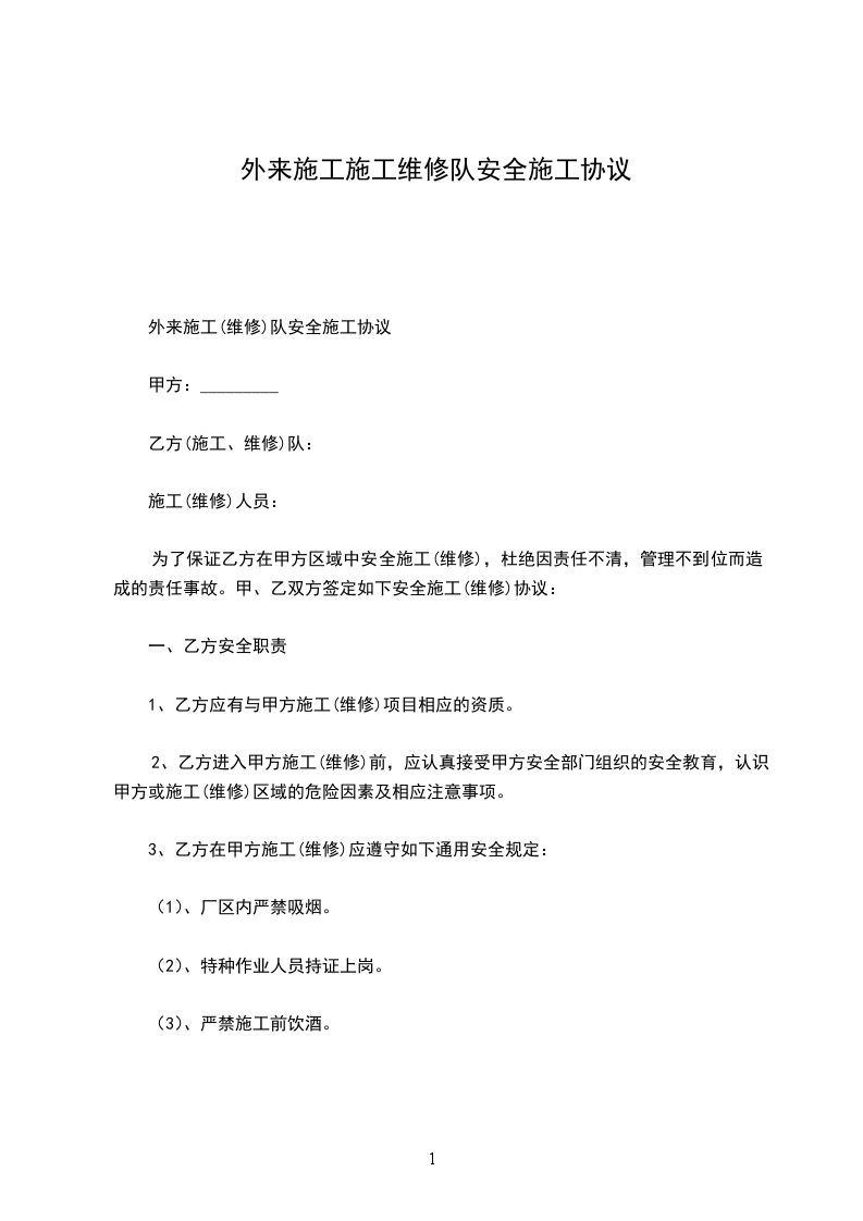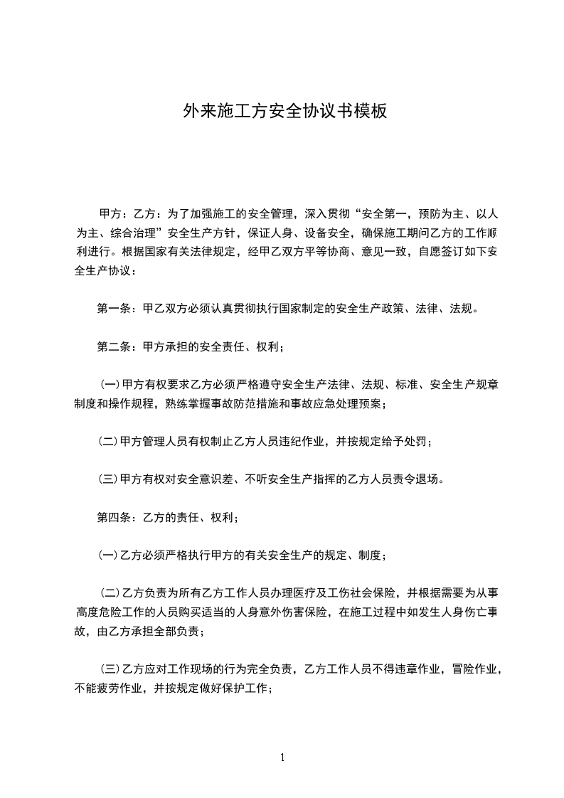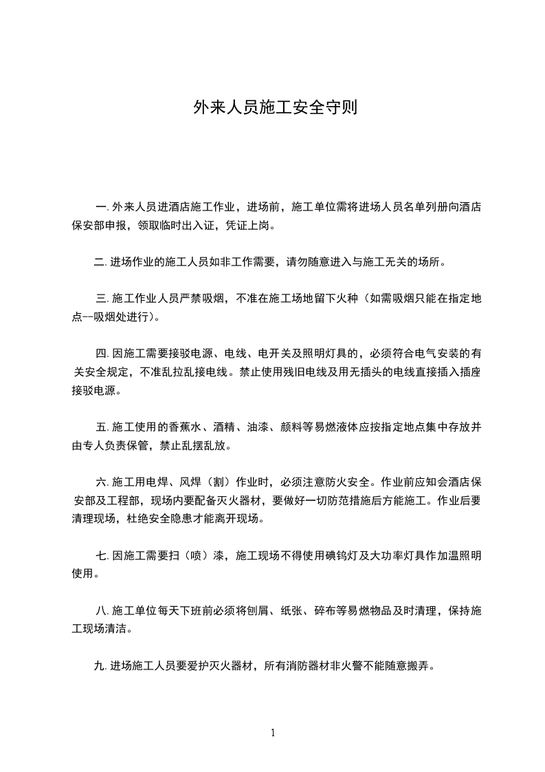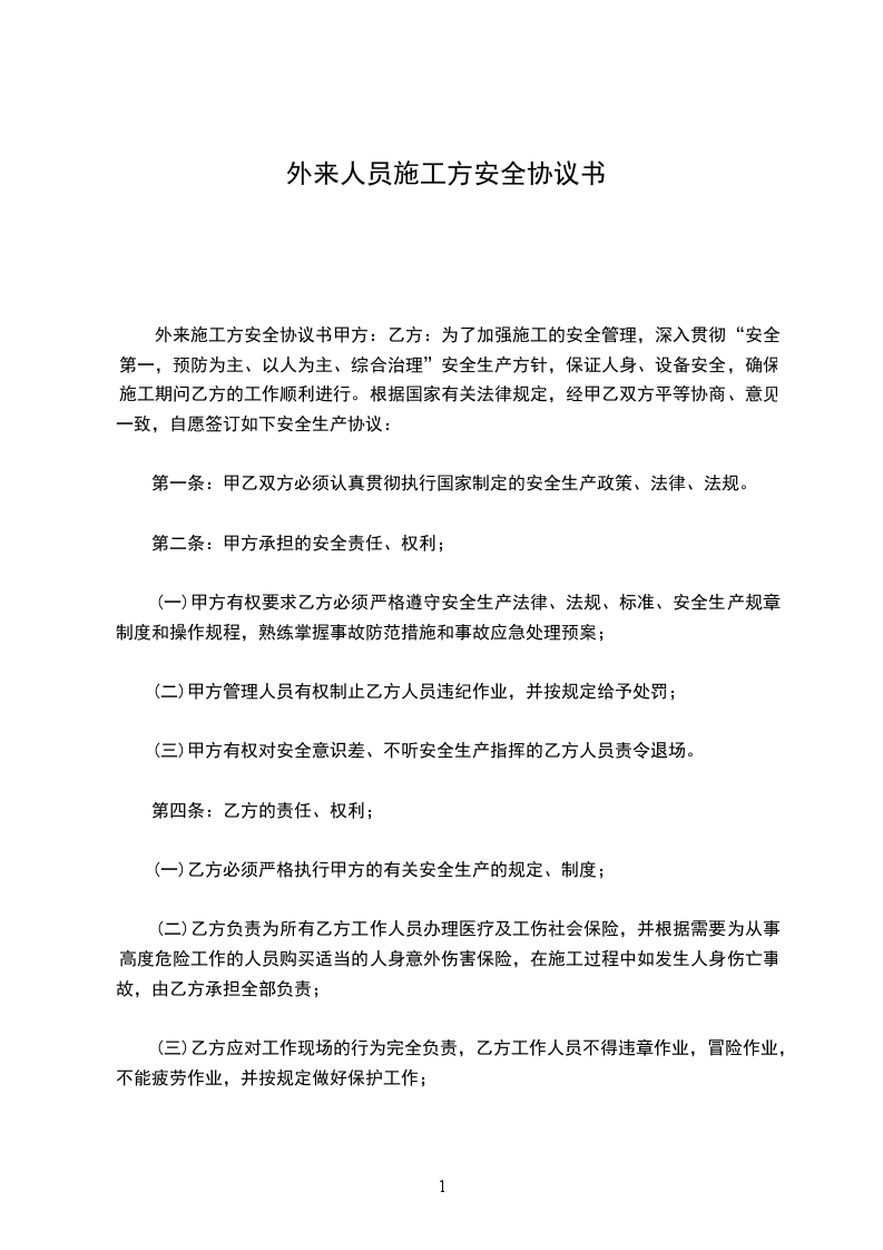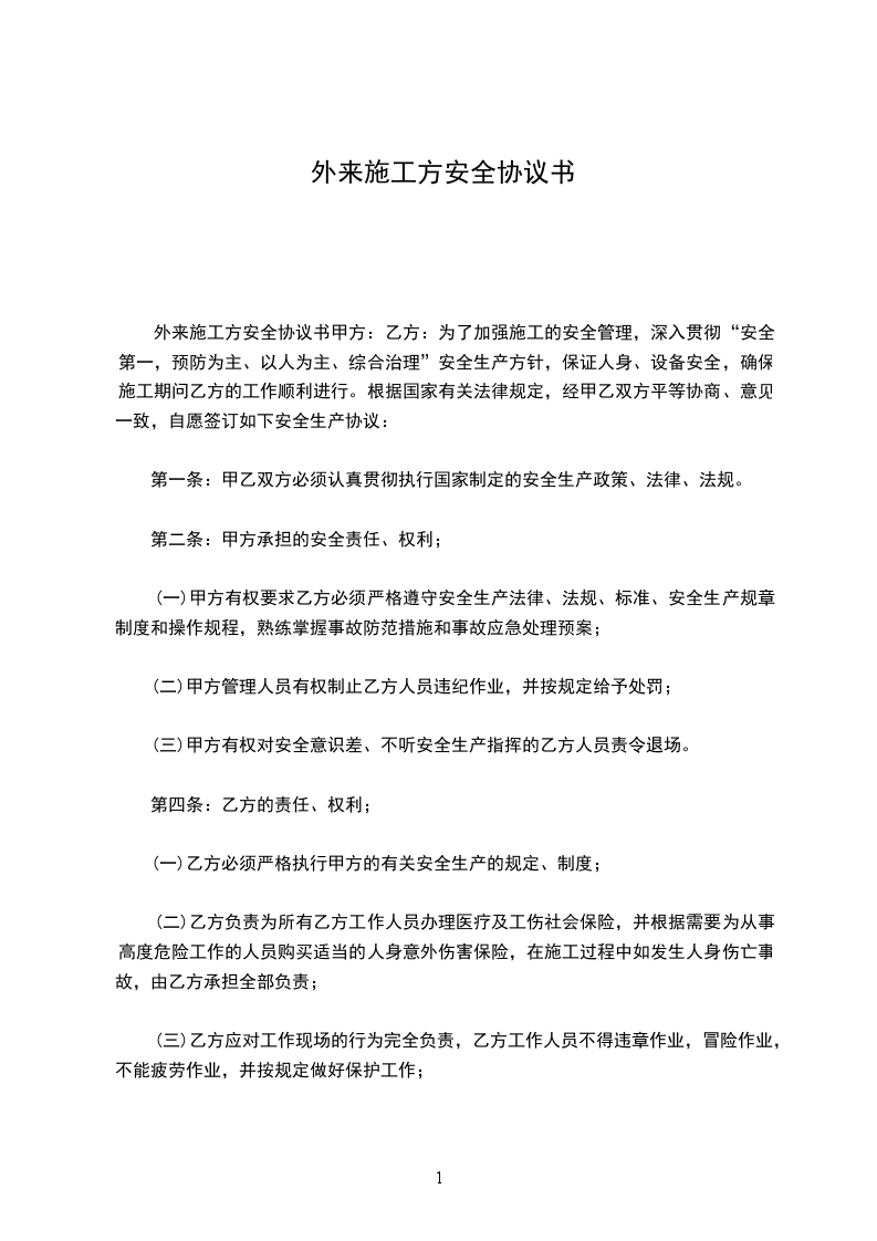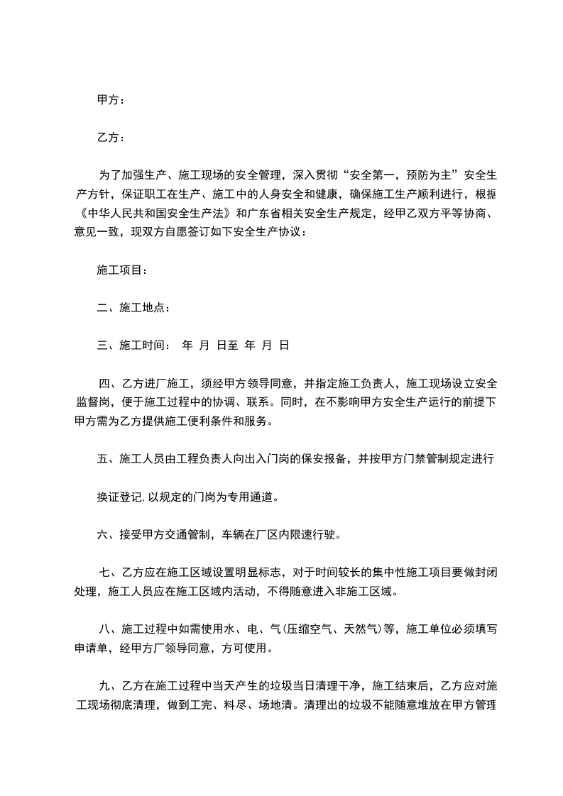 一、乙方单位人员进入甲方厂区、车间施工前,必须签订此协议书,并对施工人员进行进行安全教育后,方可开始施工。
