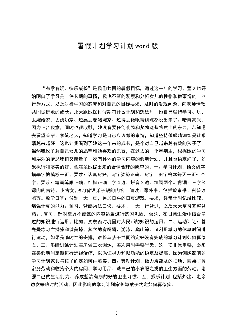 规划好整个暑假的大致时间: