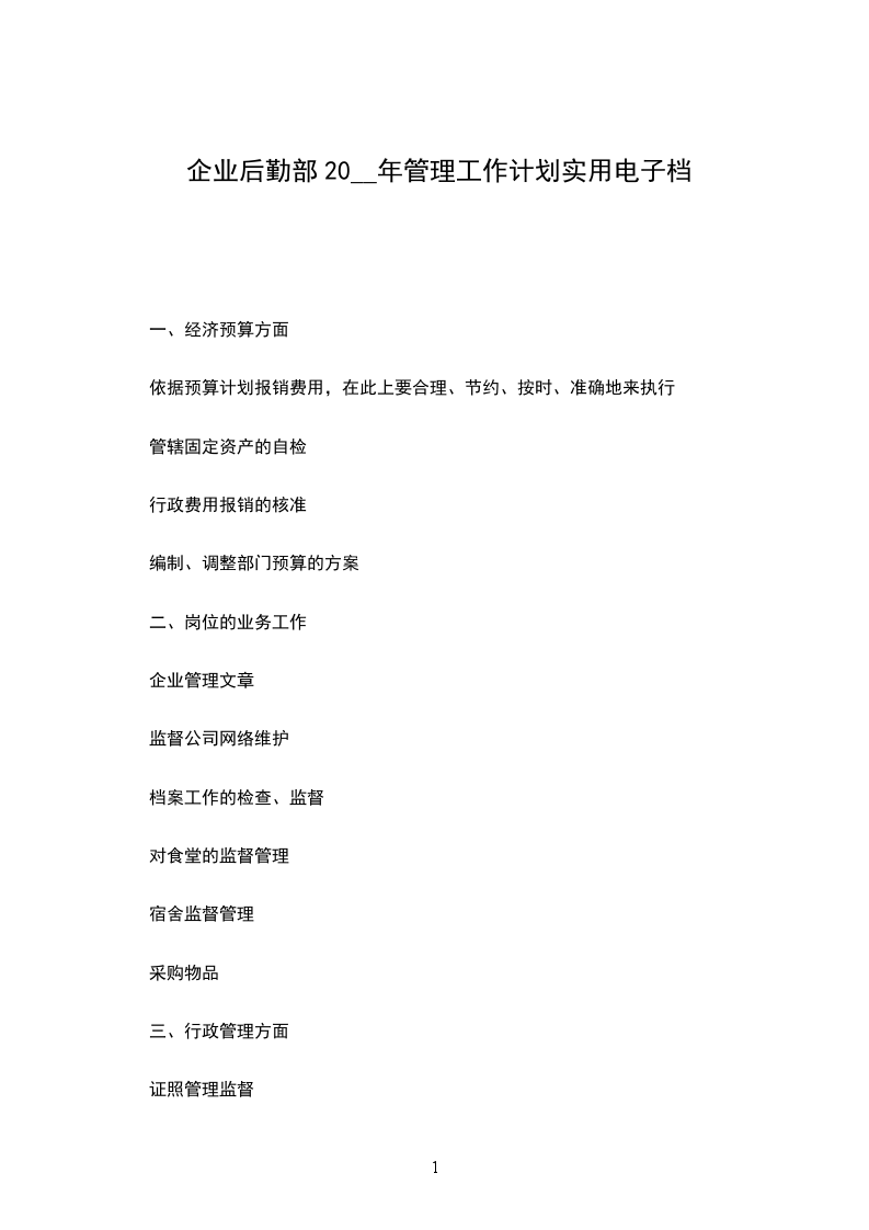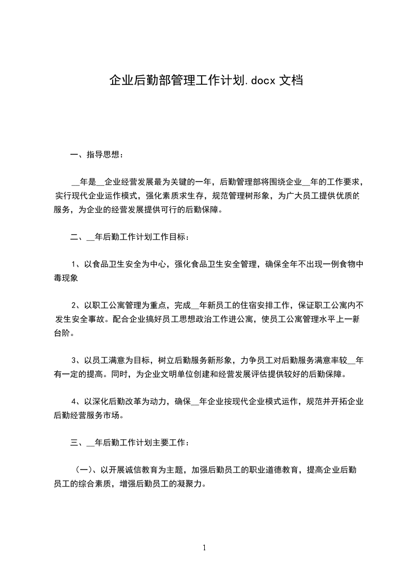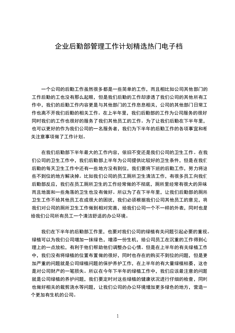 __年是公司经营发展最为关键的一年,后勤管理部将围绕公司__年的工作要求,实行现代企业运作模式,强化素质求生存,规范管理树形象,为广大员工提供优质的服务,为公司的经营发展提供可行的后勤保障。