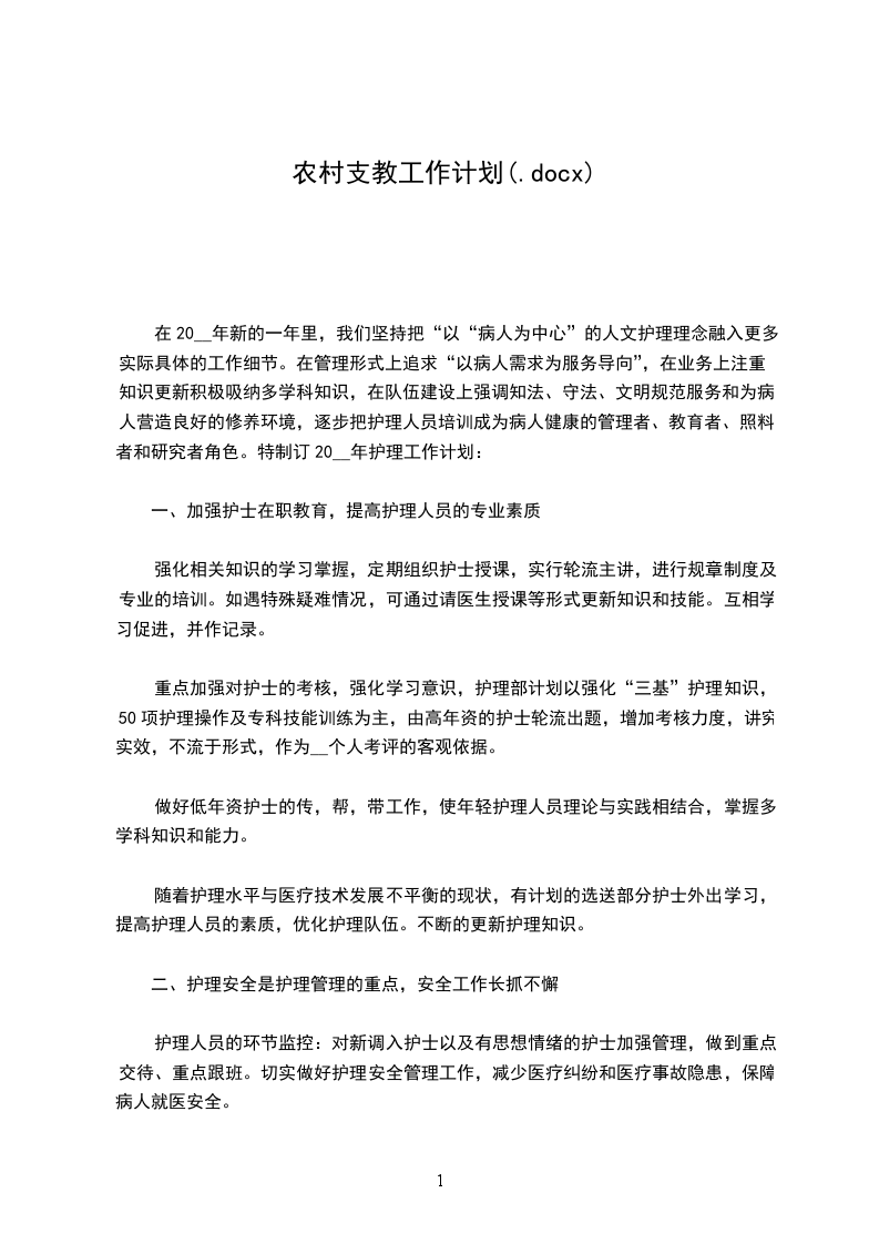 在20__年新的一年里,我们坚持把“以“病人为中心”的人文护理理念融入更多实际具体的工作细节。在管理形式上追求“以病人需求为服务导向”,在业务上注重知识更新积极吸纳多学科知识,在队伍建设上强调知法、守法、文明规范服务和为病人营造良好的修养环境,逐步把护理人员培训成为病人健康的管理者、教育者、照料者和研究者角色。特制订20__年护理工作计划: