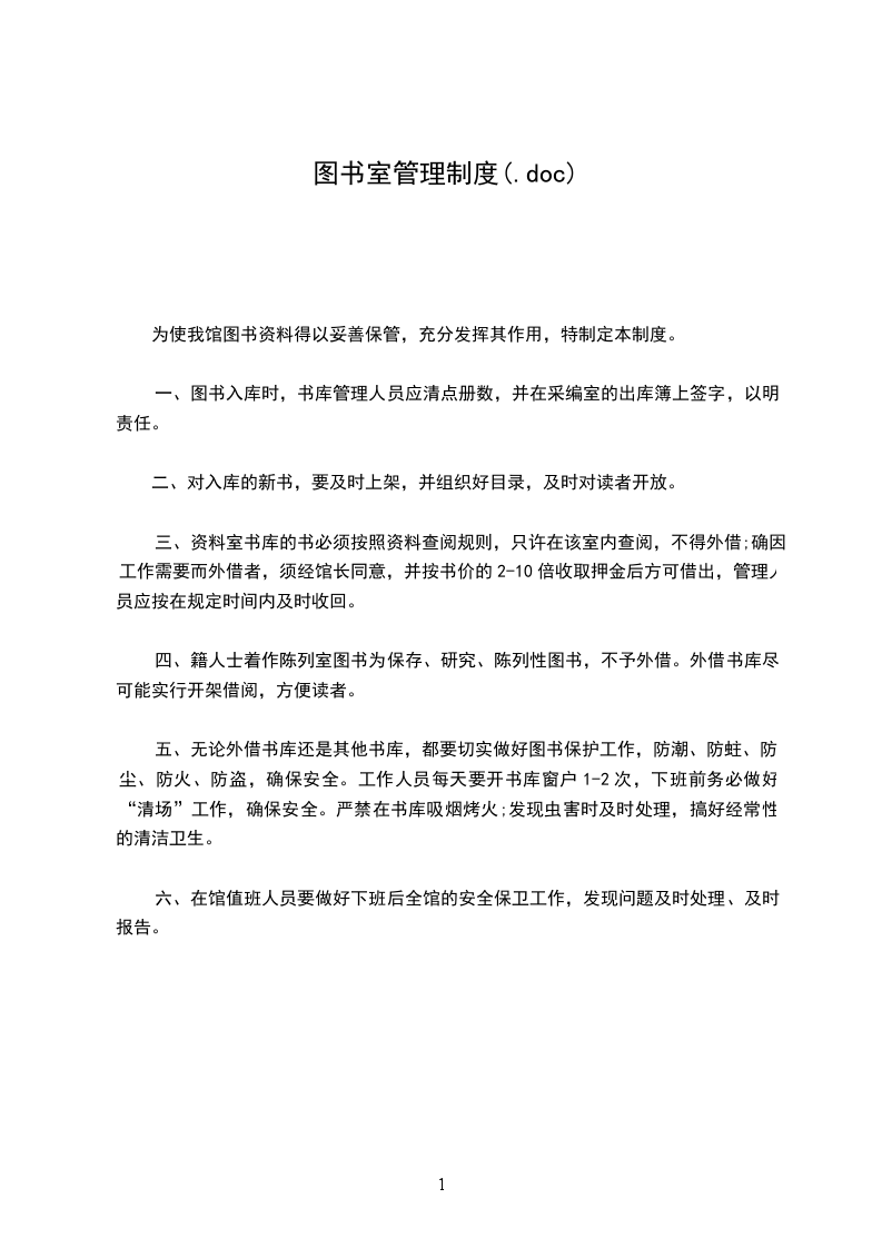 7、遗失或严重损坏书刊,原则上应赔偿原书。如不能实现,应加倍赔偿,孤本等珍贵图书按原价3——5倍赔款。成套书刊遗失一册,按全套价赔款,余书仍留室存藏。对书刊有轻微损坏者给予批评教育,并责成其修补好。