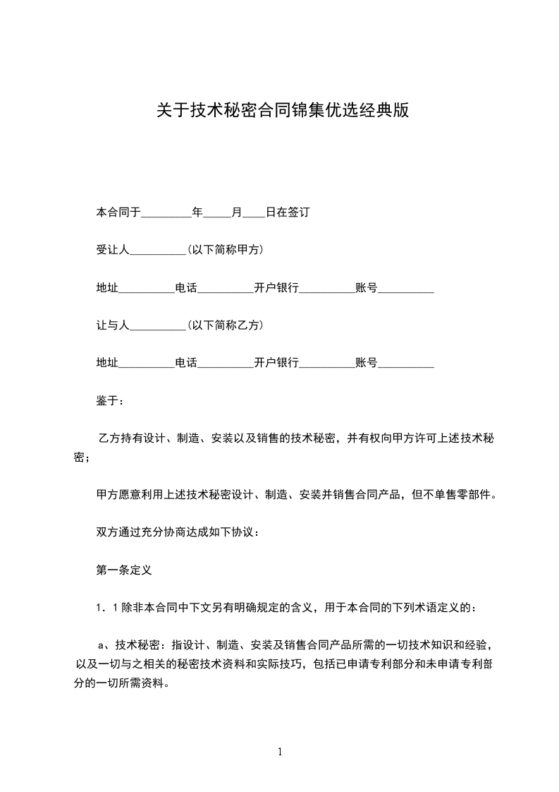 a.技术秘密:指设计、制造、安装及销售合同产品所需的一切技术知识和经验,以及一切与之相关的秘密技术资料和实际技巧,包括已申请专利部分和未申请专利部分的一切所需资料。