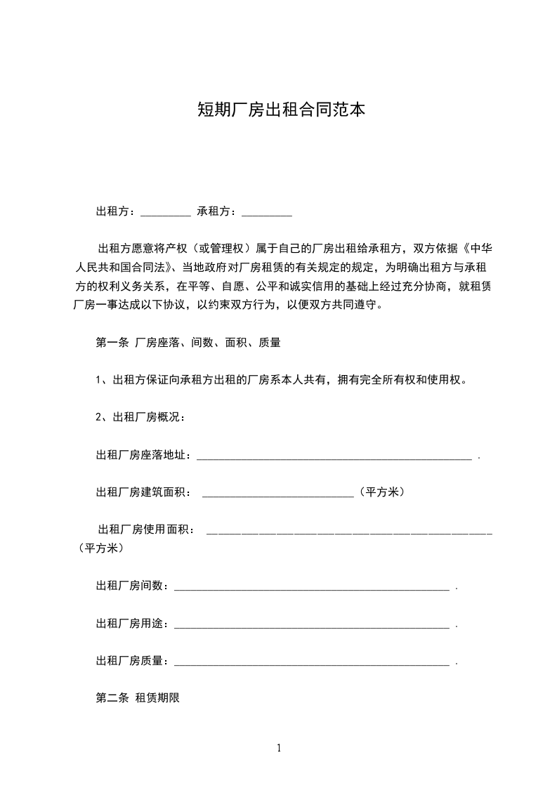 1、出租方保证向承租方出租的厂房系本人共有,拥有完全所有权和使用权。