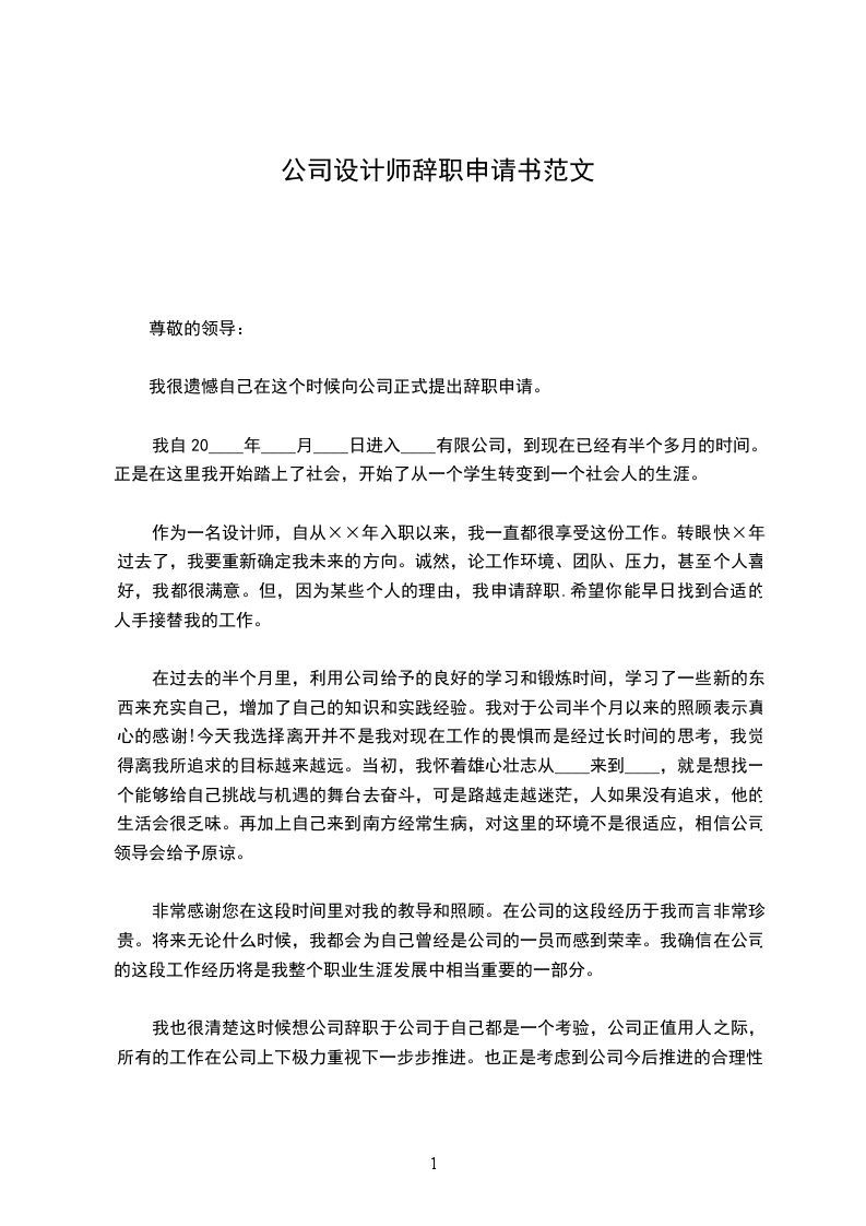 尊敬的公司领导:
