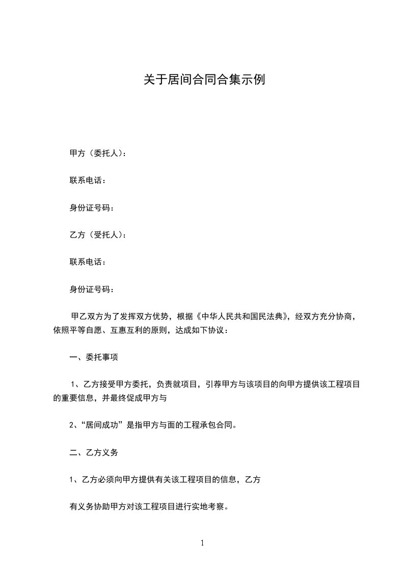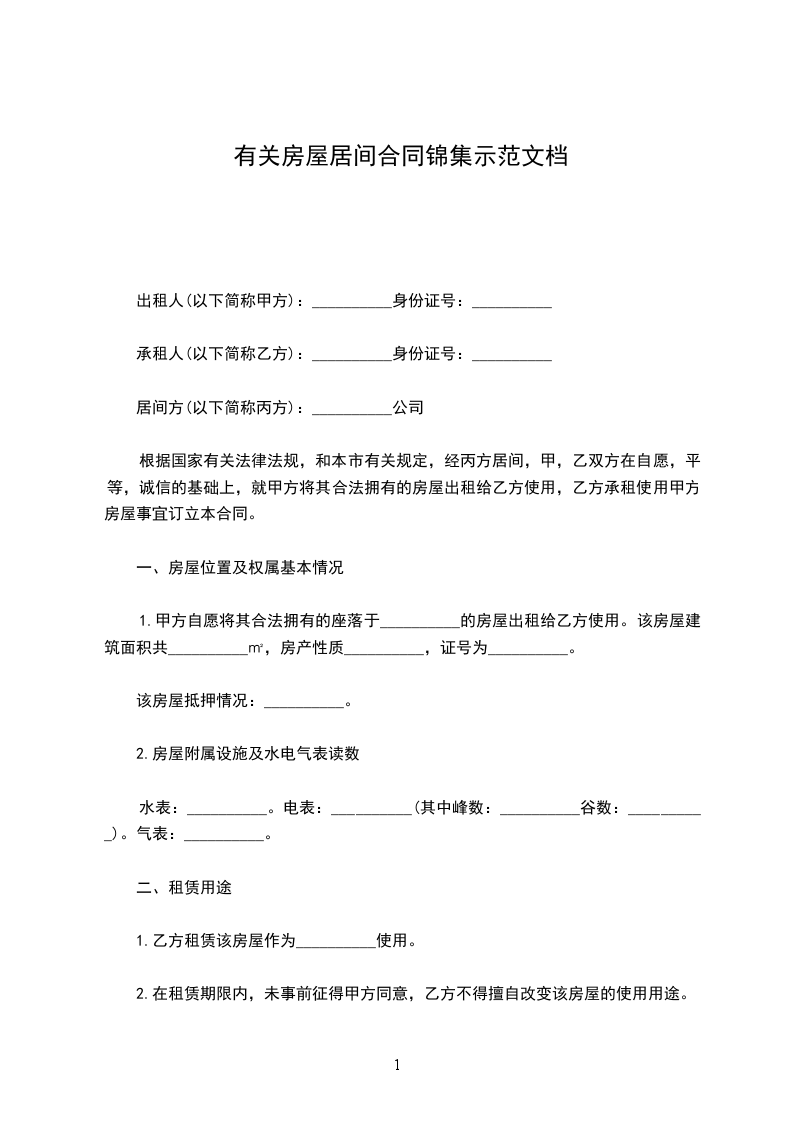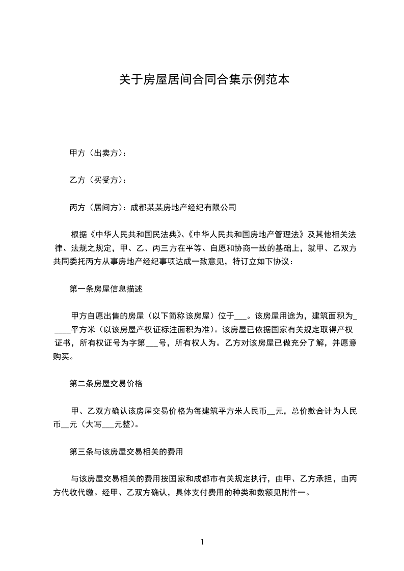 10.2丙方一次性收取居间服务费人民币__元,大写:___元,由___方承担。
