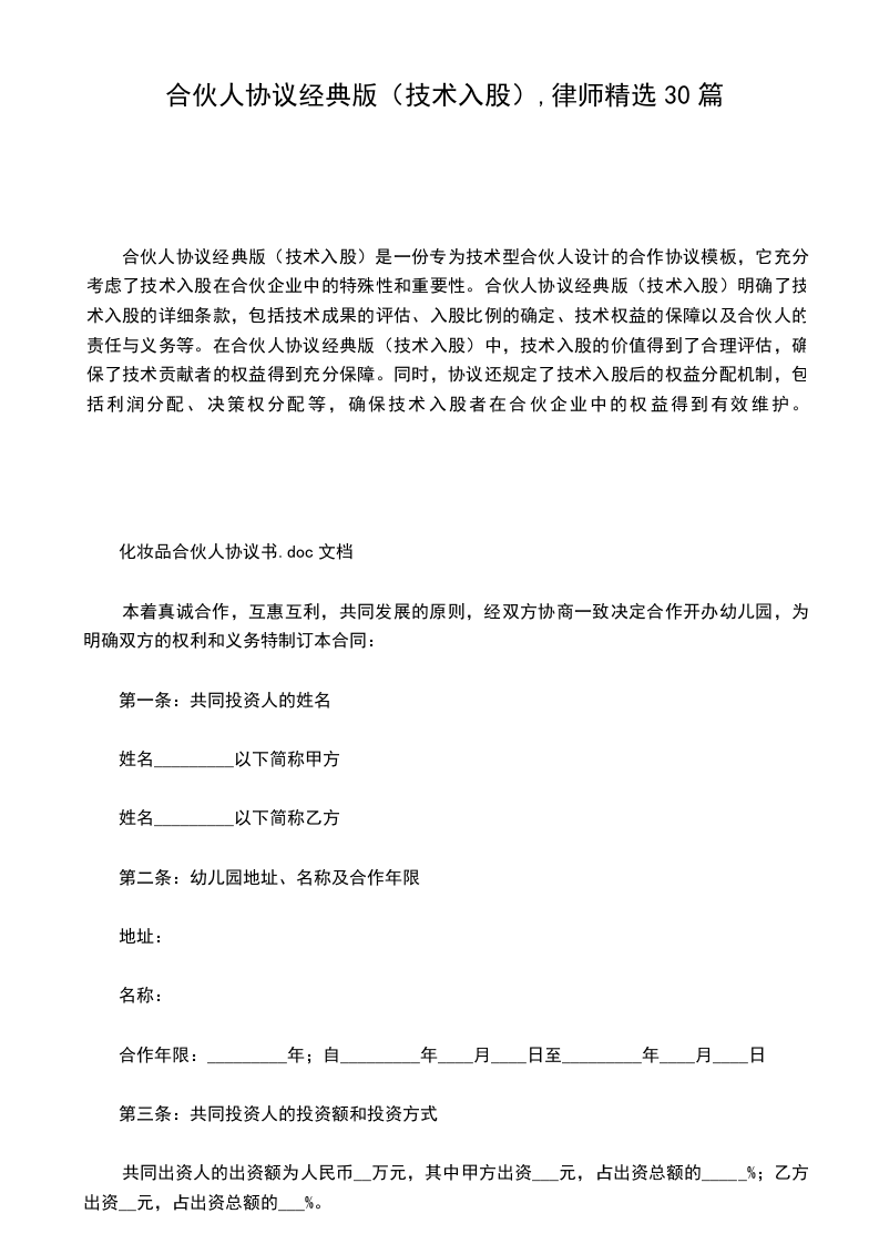 2、在合作期内因战争,灾害,疾病等不可抗力因素导致项目合作解散或合作期满各合作方不再合作,该项目技术内容归双方所有。