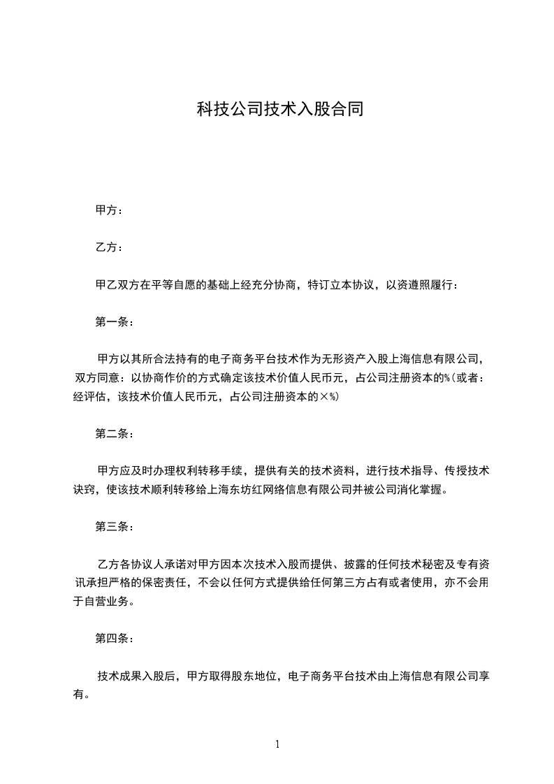 甲方出资金,占股70%;乙方出技术,占股30%。