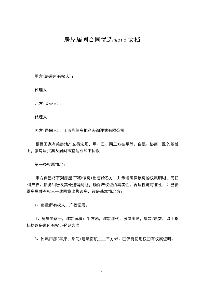 丙方(居间人):江西鼎信房地产咨询评估有限公司