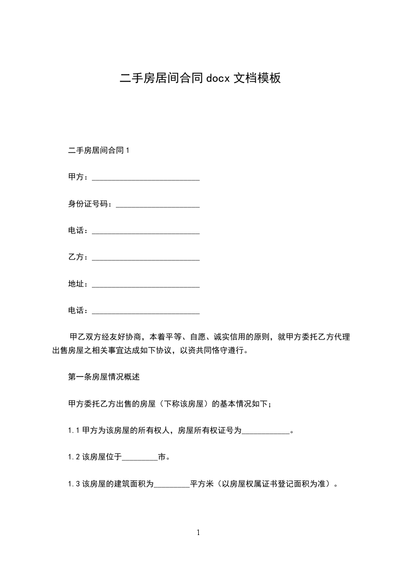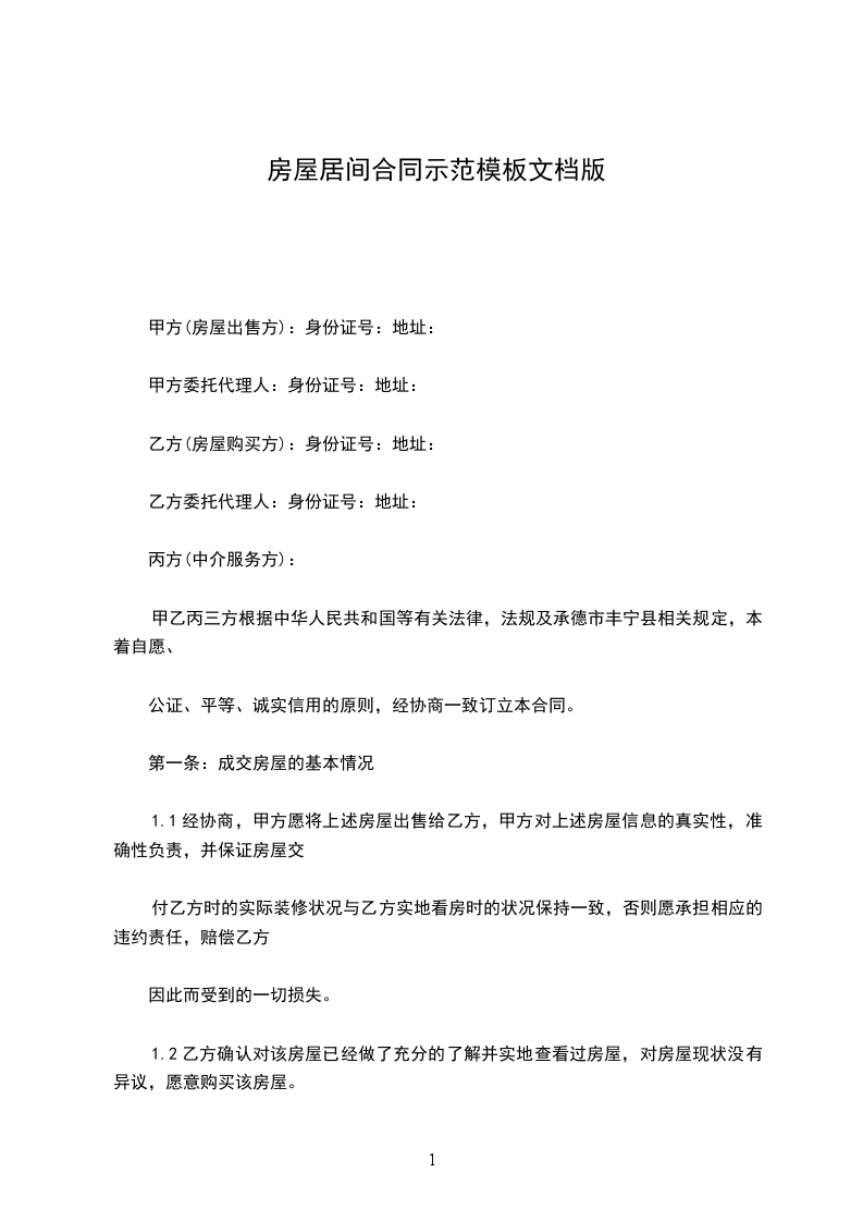 居间方(乙方):(身份证号:)