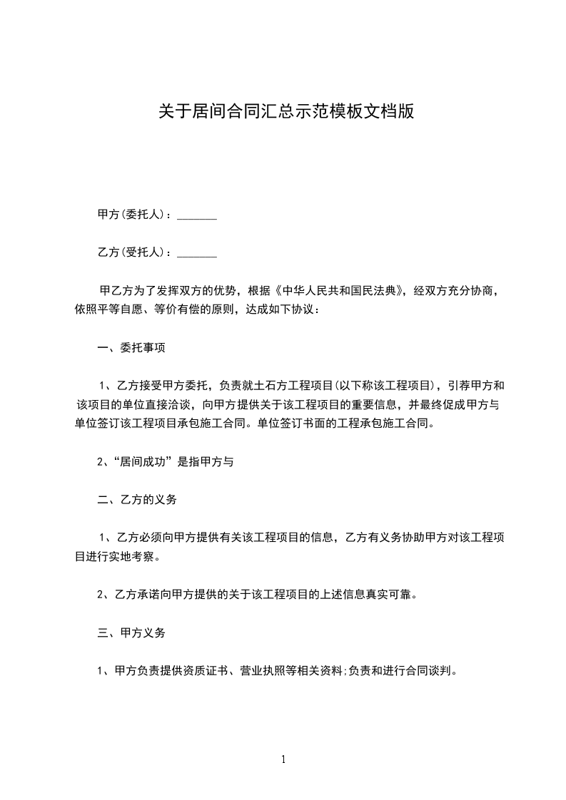 1、凡是甲方、甲方的关联公司与乙方所引入资产受让人签订正式的股权资产转让合同,即视为乙方已经按约完成居间服务。