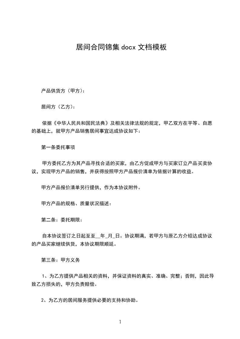 5、本合同一式两份,委托方一份,居间方甲乙双方各执一份,双方签字盖章后生效,具有同等的法律效力。